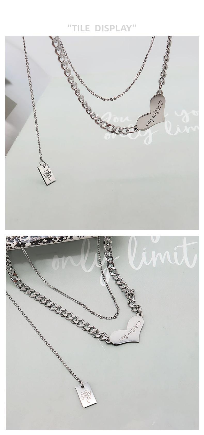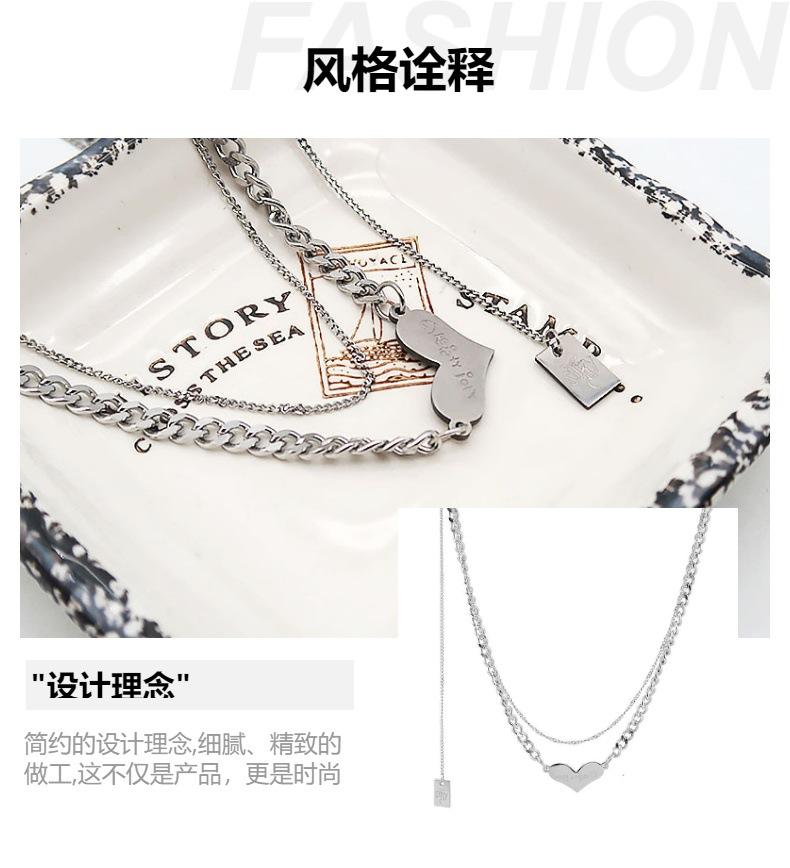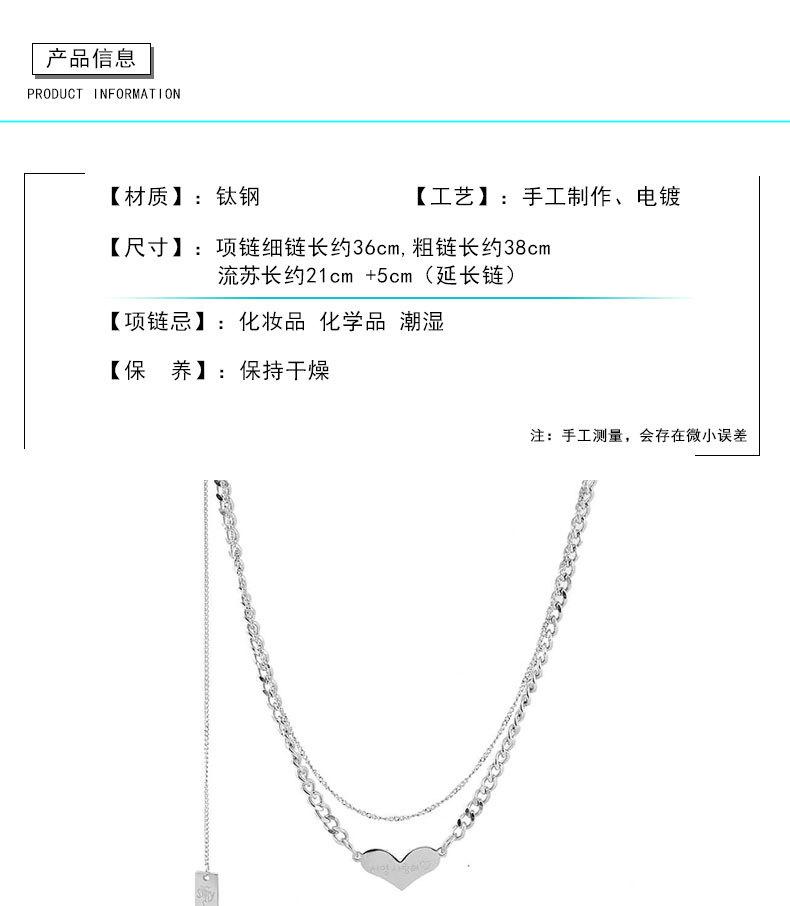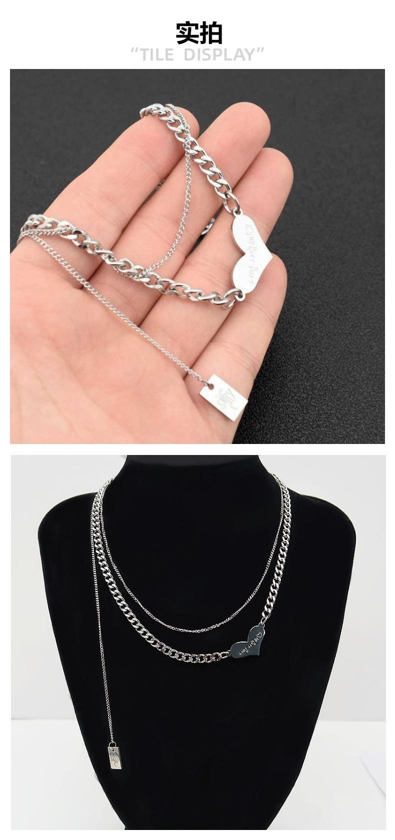 Collar de acero de titanio con diseño de amor de moda de estilo coreano para mujer, cadena de clavícula corta de doble capa simple, sin decoloración, collar de corbata de discoteca a la moda.