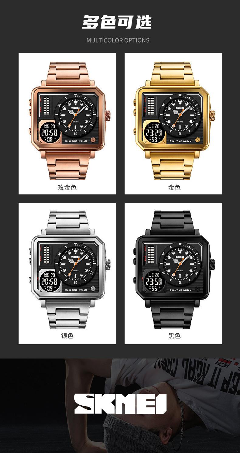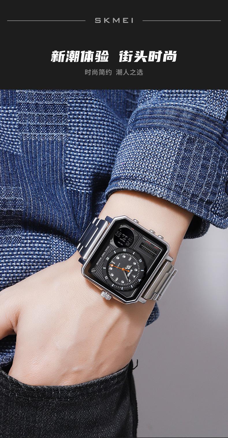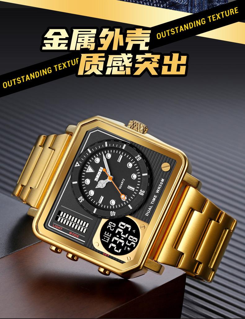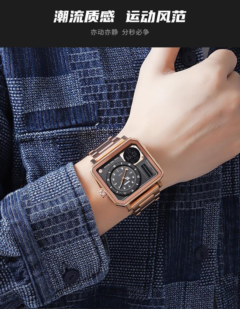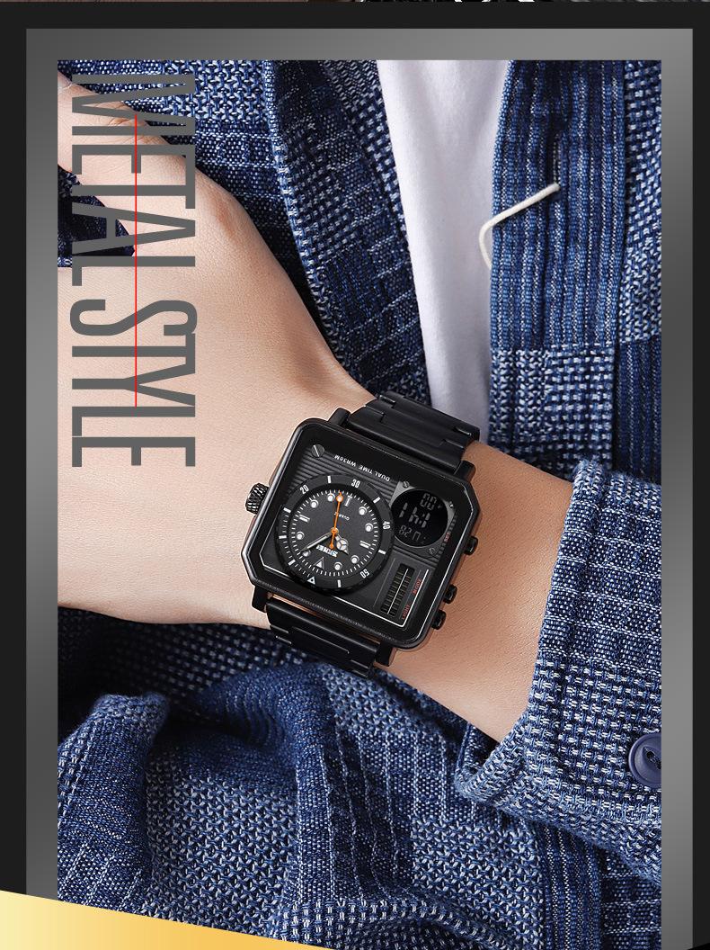 Reloj electrónico multifunción deportivo de moda con doble hora y correa de acero con placa grande de EE. UU.
