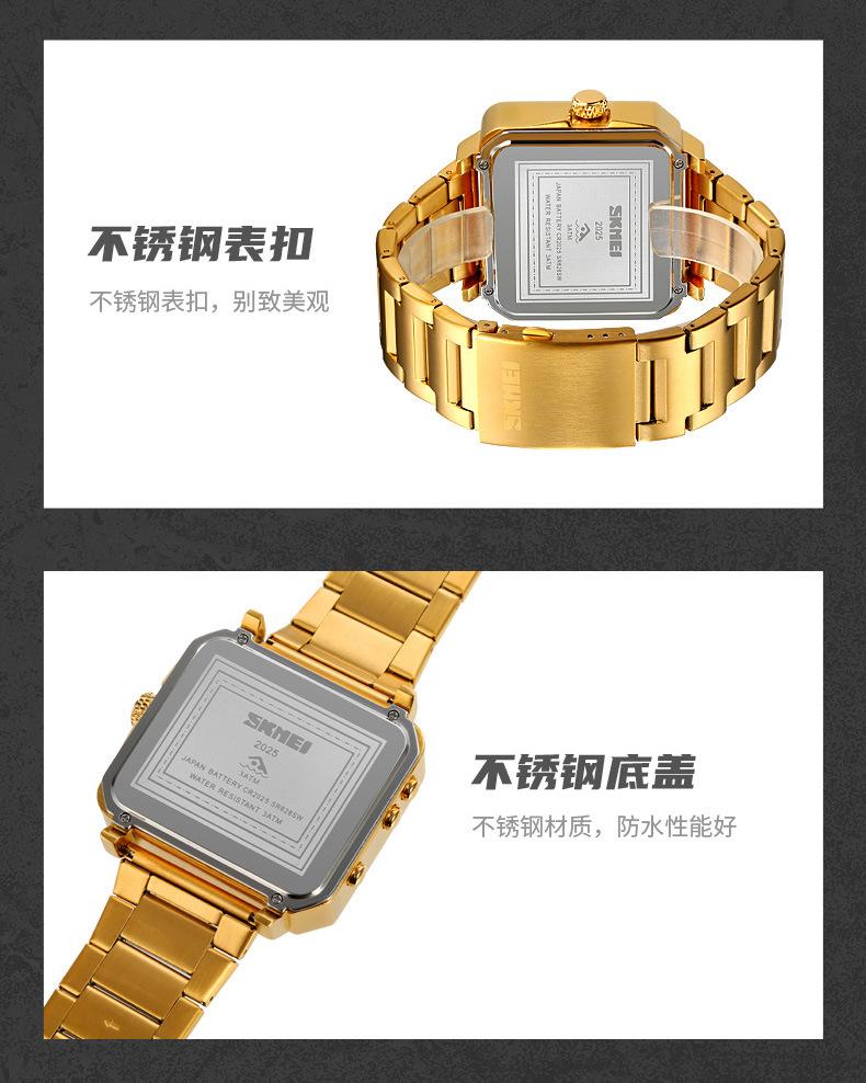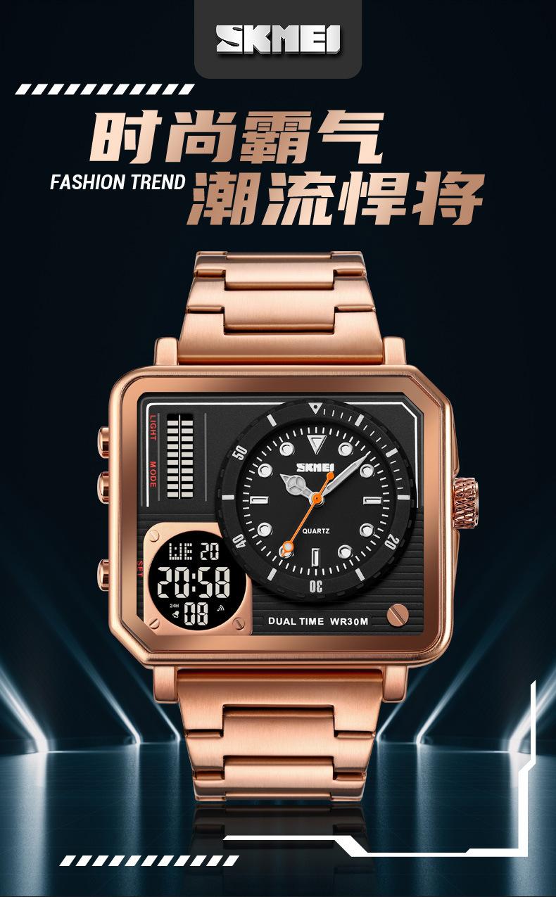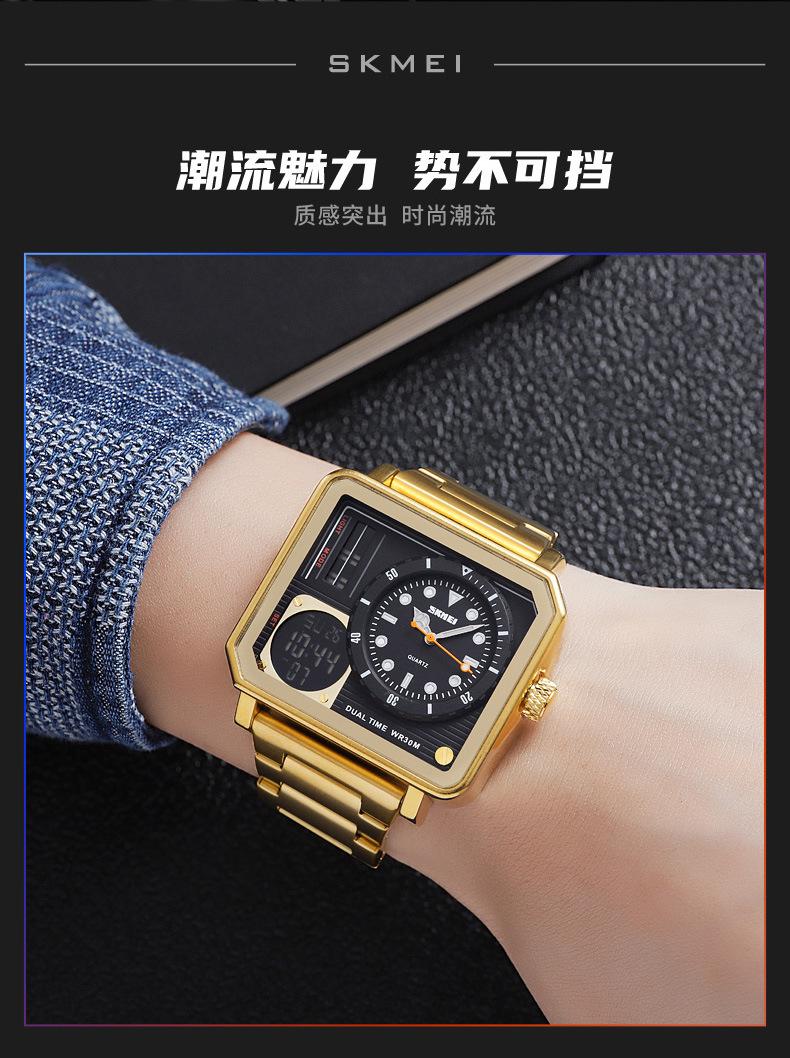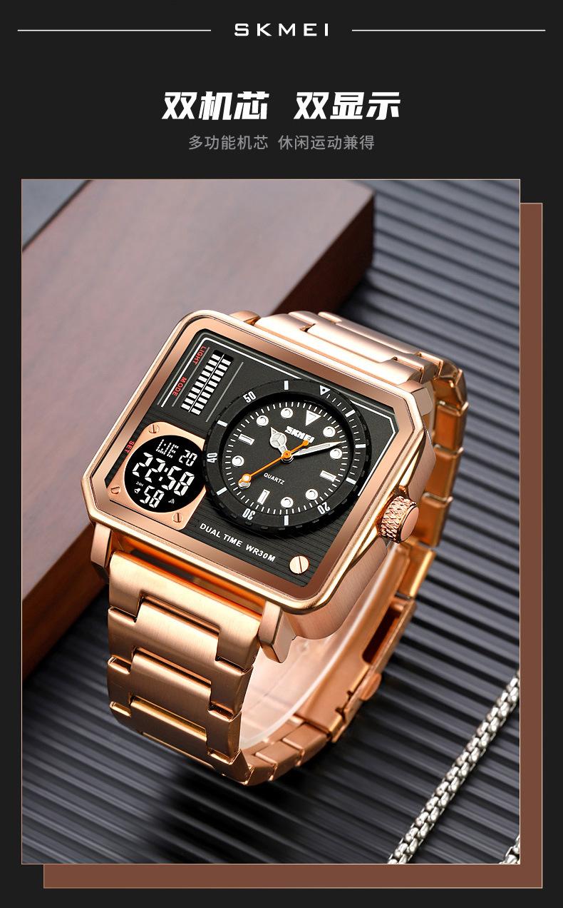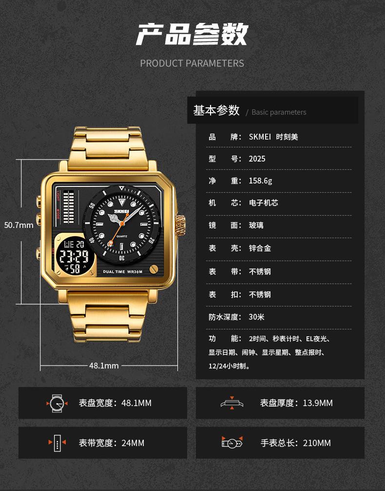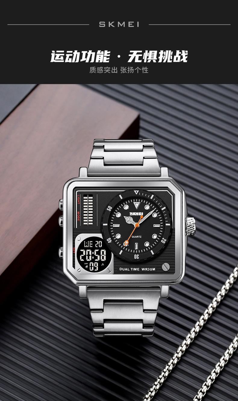 Reloj electrónico multifunción deportivo de moda con doble hora y correa de acero con placa grande de EE. UU.
