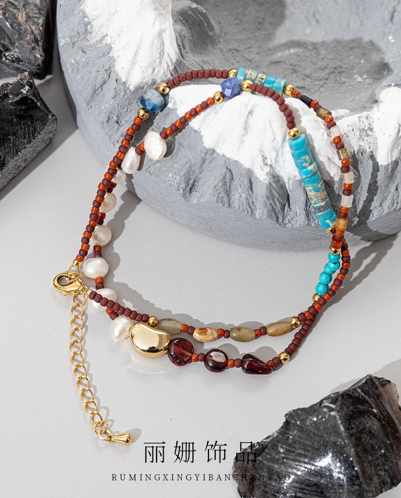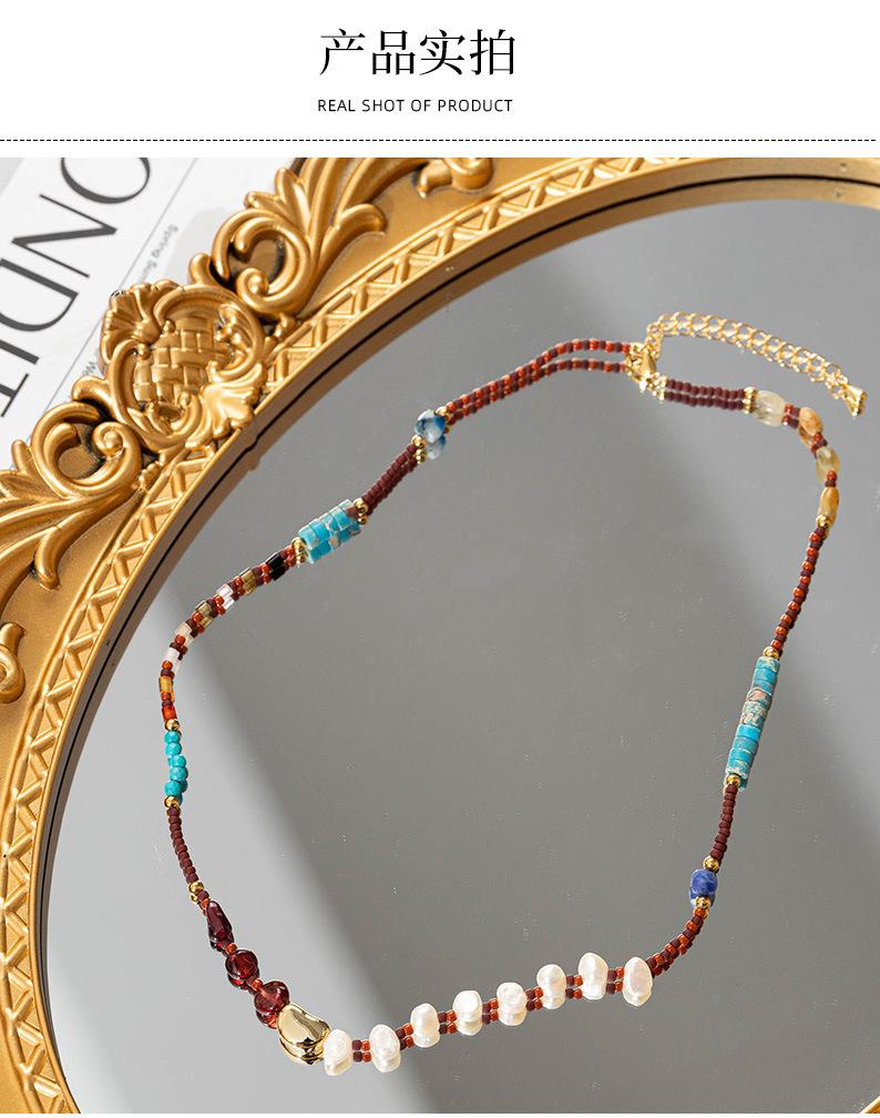 Collar de perlas y cuentas de piedra natural de estilo étnico explosivo, estilo Little Red Book, estilo retro, ligero y lujoso, combina con todo.