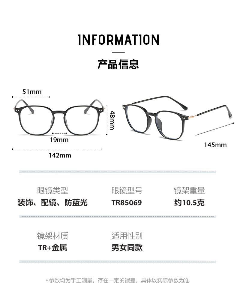 Nuevas gafas ultraligeras TR90, montura redonda pequeña que no escoge el rostro, versión coreana femenina, se pueden equipar con gafas ópticas para miopía de grados masculinos.