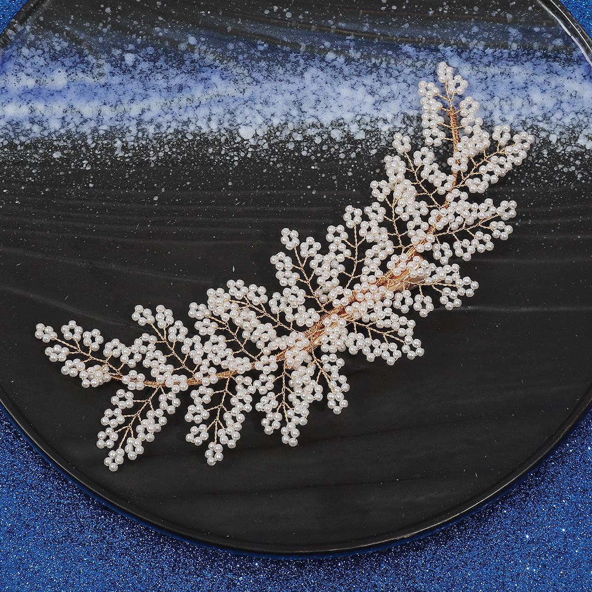 Horquilla de perla transfronteriza europea y americana para mujer, tejida a mano, con clip de una palabra, accesorios para el cabello sencillos, tocado de novia Mori, venta al por mayor