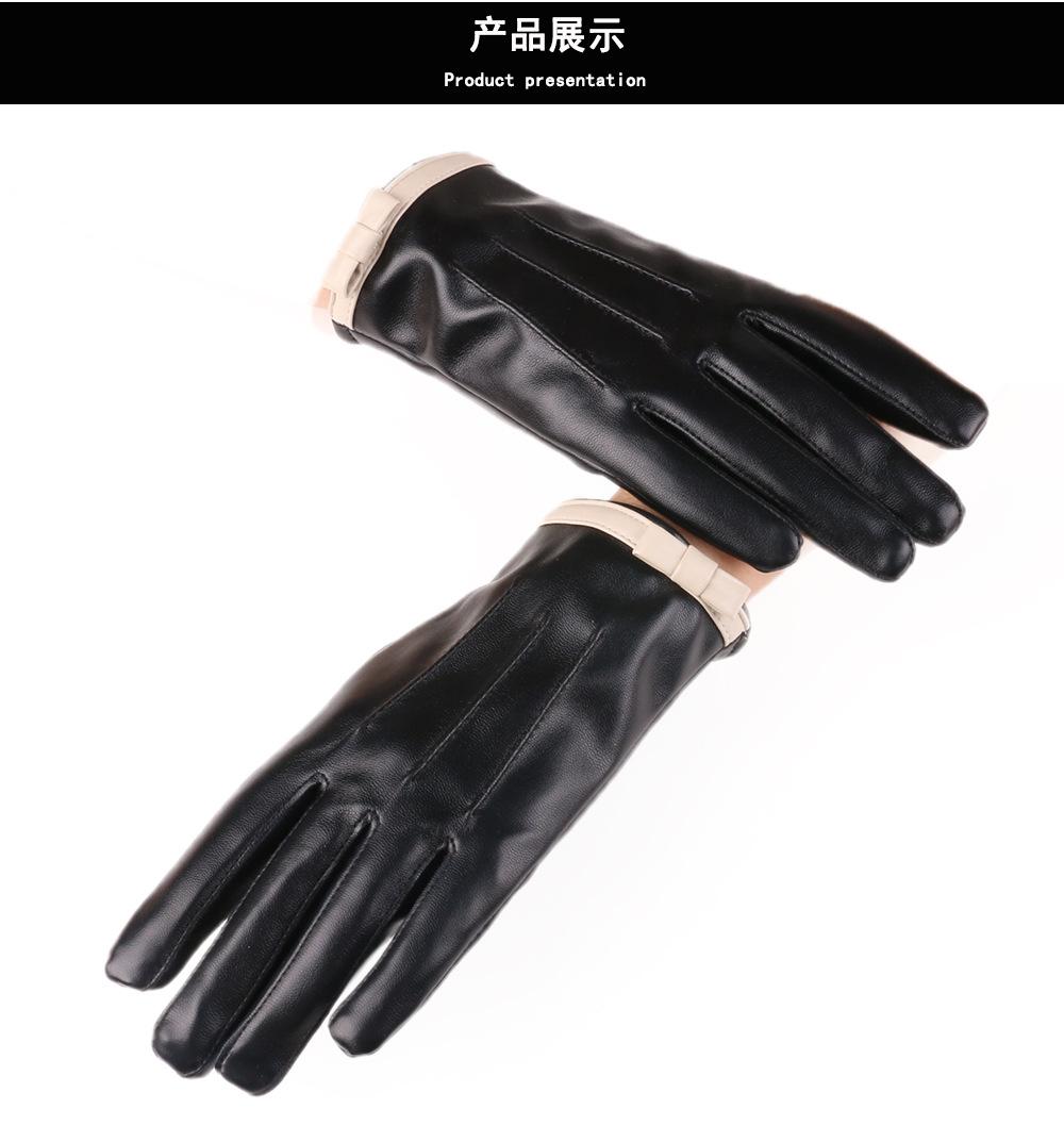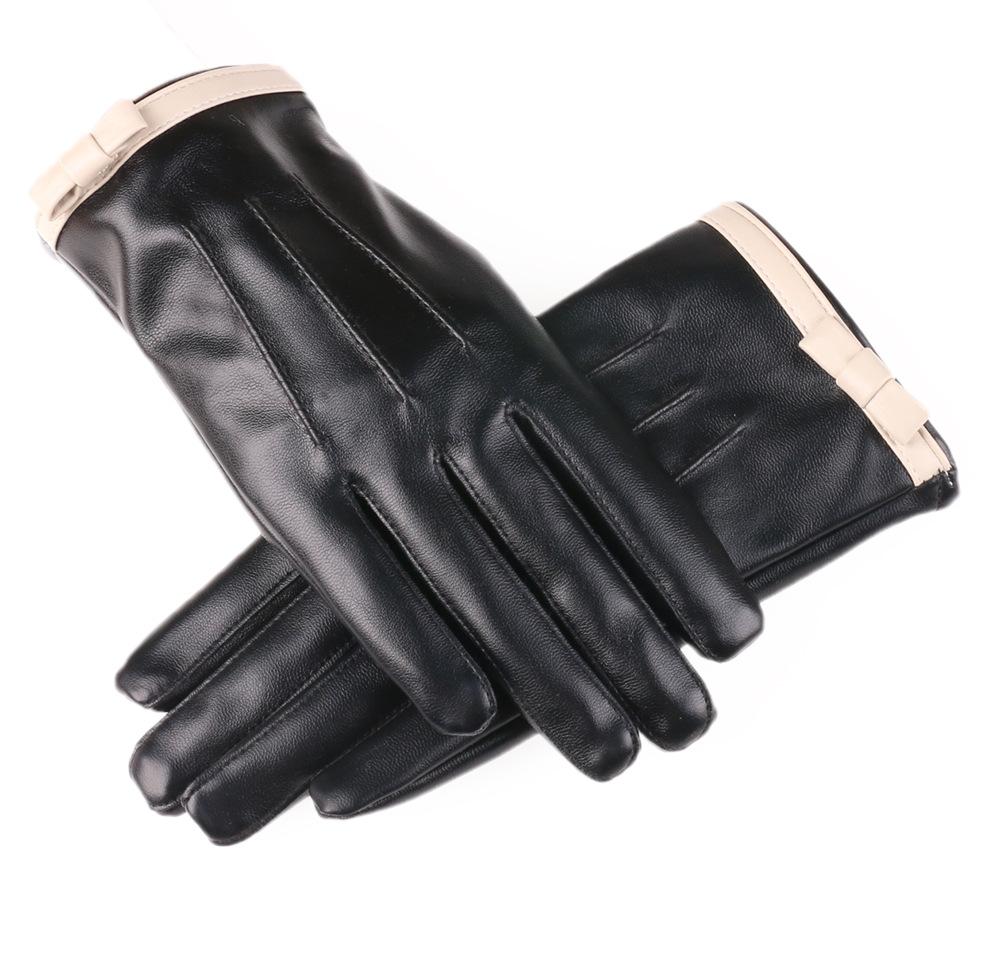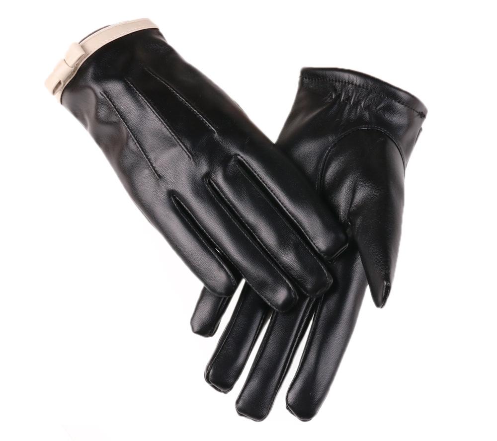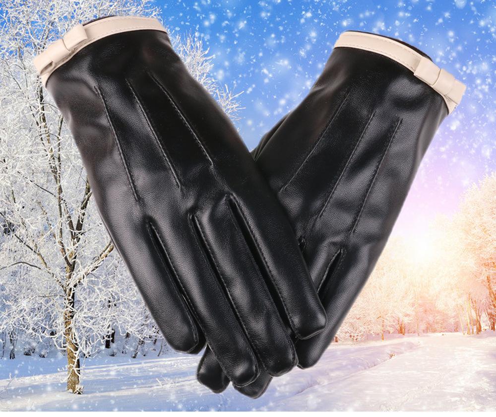 Guantes Cálidos para Mujer con Forro Polar a Prueba de Frío Estilo Coreano Estilo Dulce Lindo Moda Lazo Cuero Guantes Táctiles para Otoño e Invierno