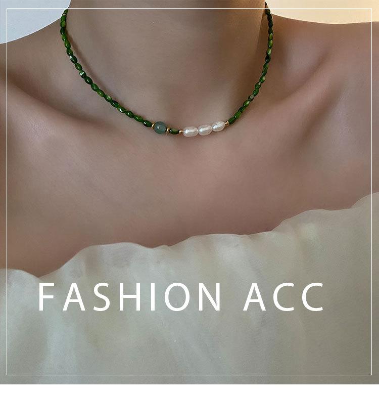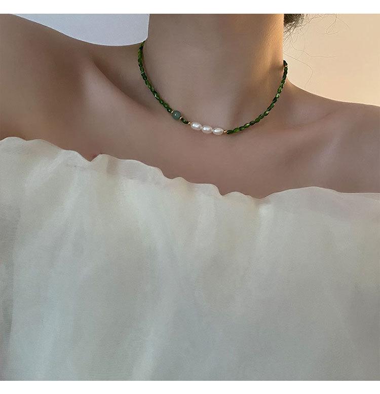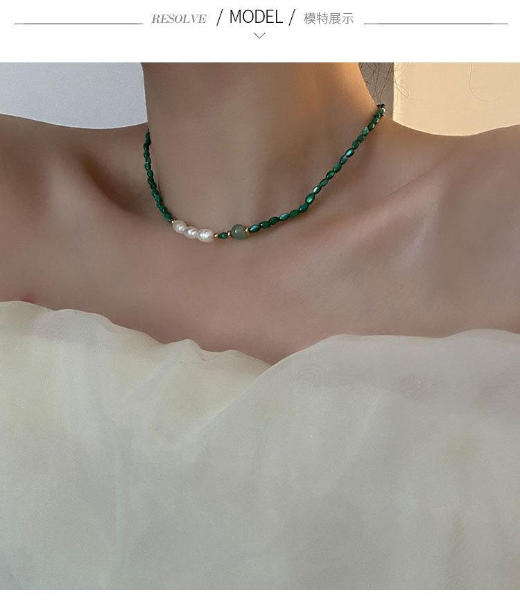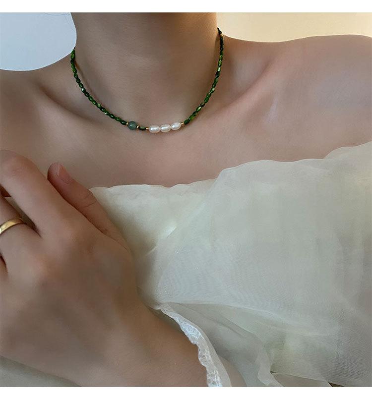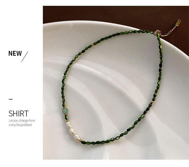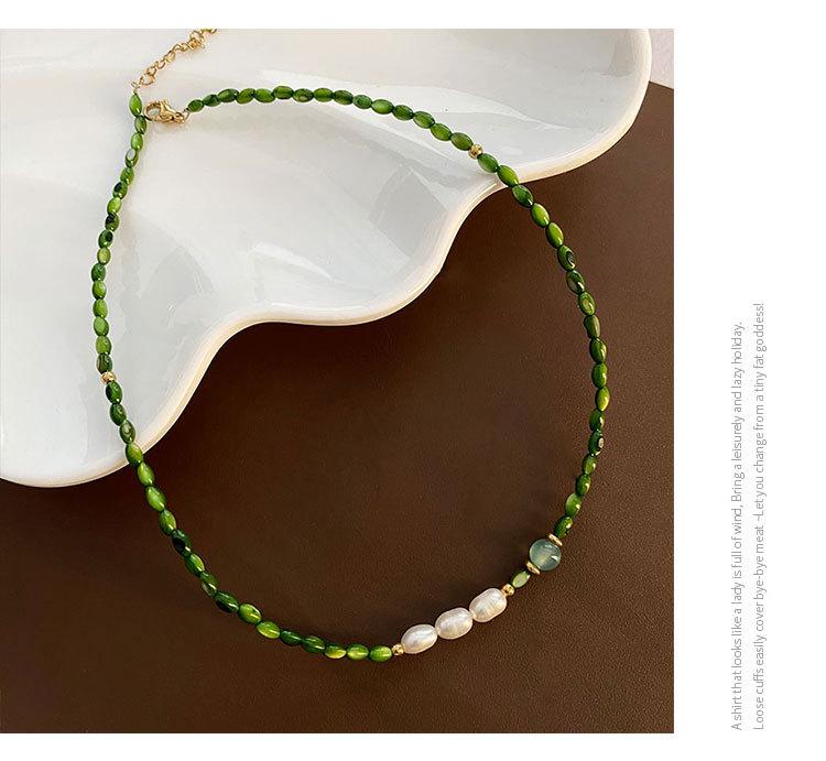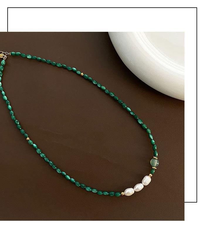 Collar de Perlas Retro Artístico Ágata Verde Collar de Moda Personalizado Nuevo Collar de Mujer de Estilo Nacional de Moda