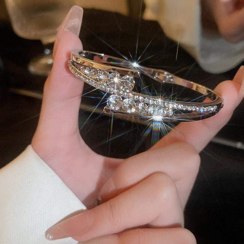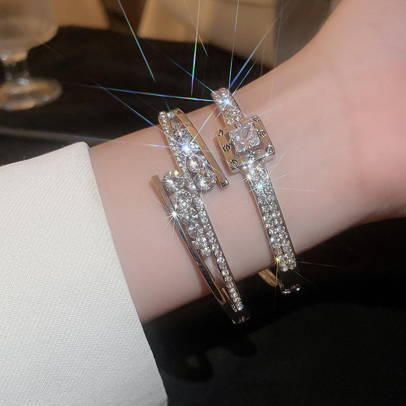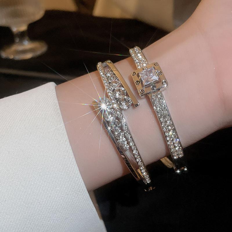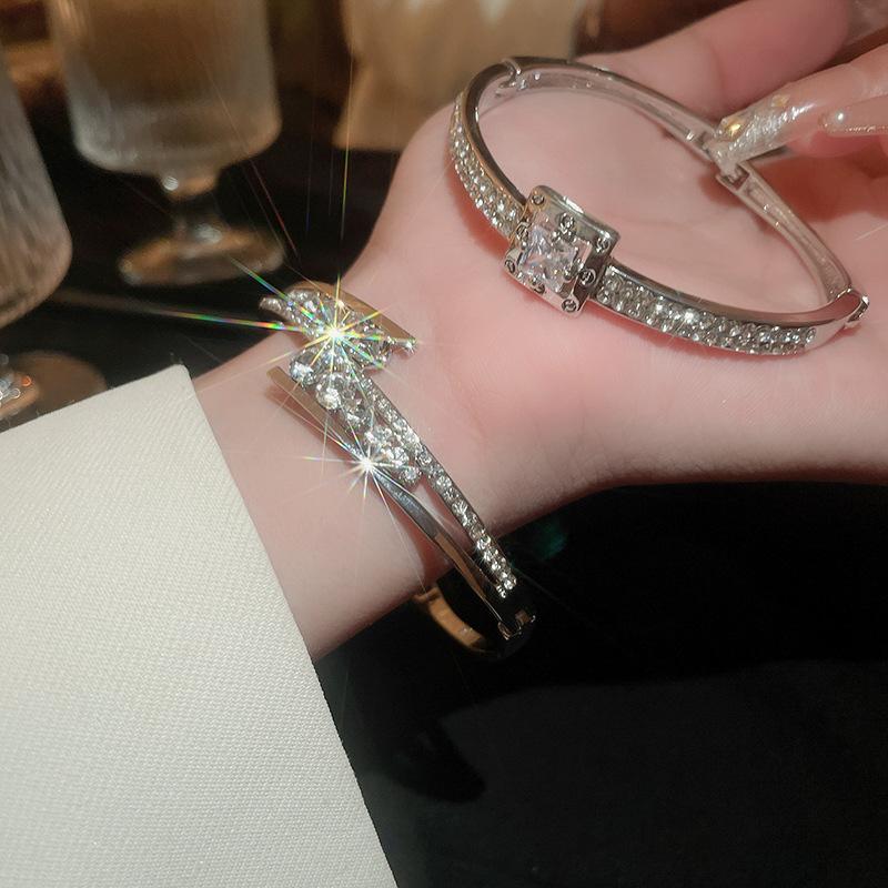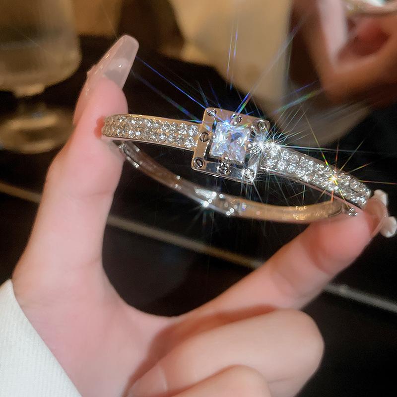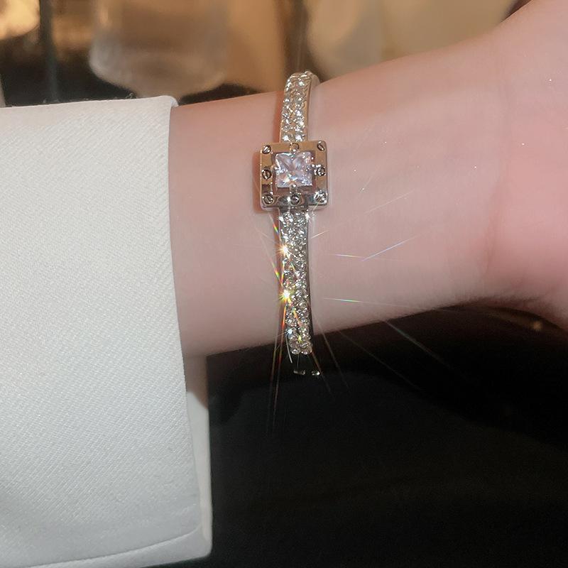 Pulsera Geométrica Cuadrada de Circonita con Incrustaciones de Diamantes Estilo Lujo Ligero Estilo de Moda Europeo y Americano Estilo Cool Elegante Pulsera de Estilo de Alta Gama para Mujer