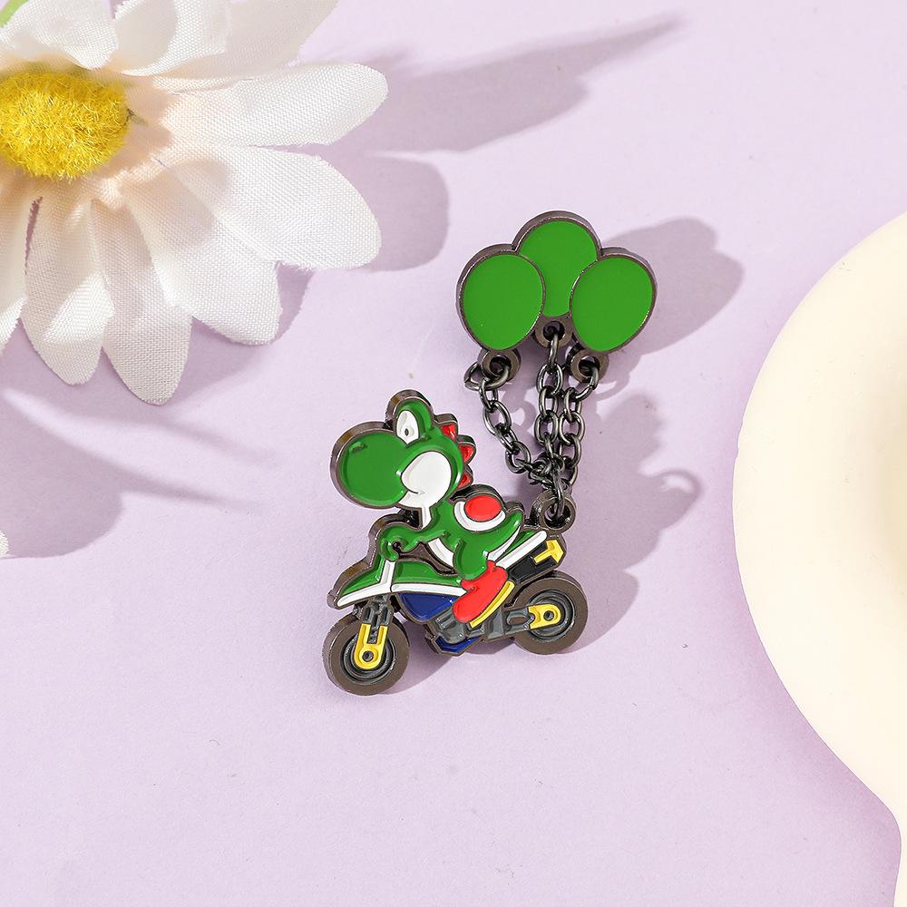 Insignia Metálica de Gota de Aceite de Globo de Dinosaurio Pequeño Creativo Personaje de Super Mario Broche Insignia de Dibujos Animados Lindo Accesorios