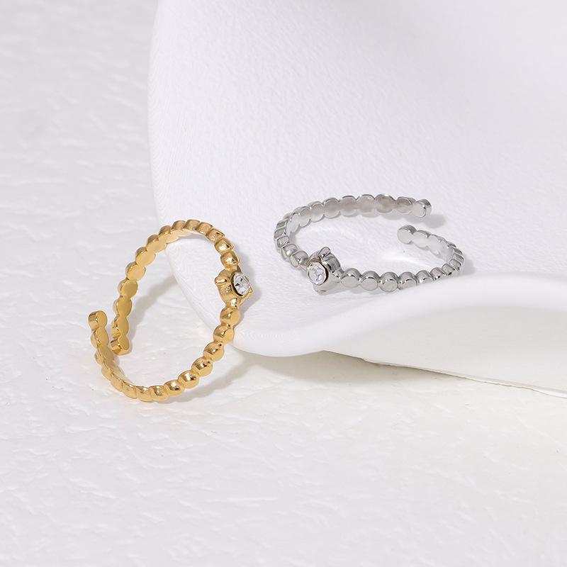 Anillo de acero inoxidable de titanio Joker de estilo europeo y americano para mujer, con apertura ajustable y diamantes de imitación, chapado en oro de 18 quilates.