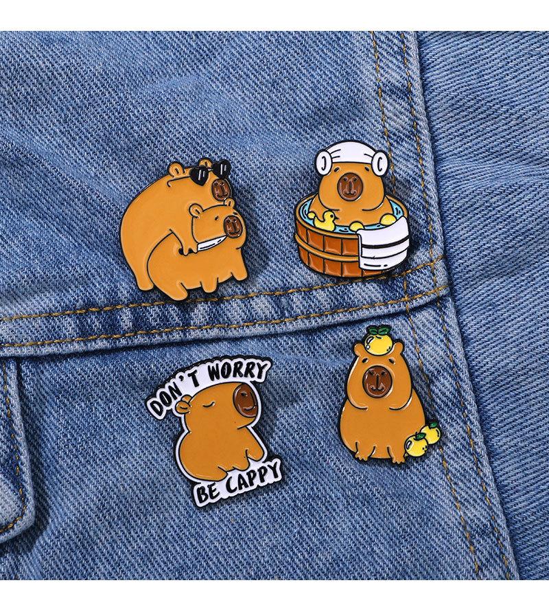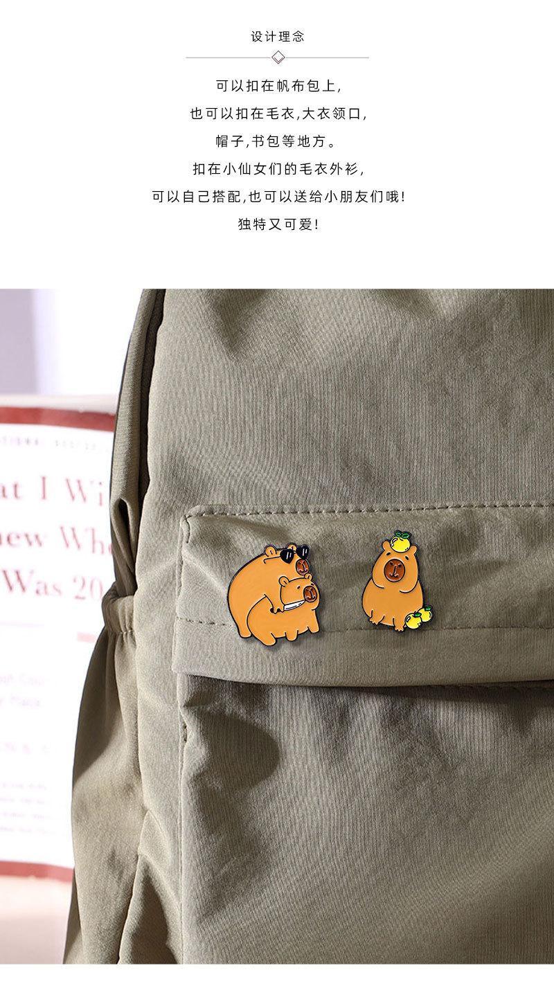 Insignia Creativa de Animales de Dibujos Animados Personalizada Forma de Capibara Aleación Metal Pintado Hebilla de Insignia Accesorios para Mochila