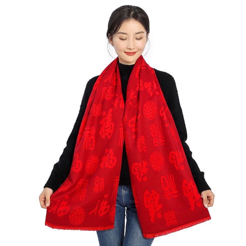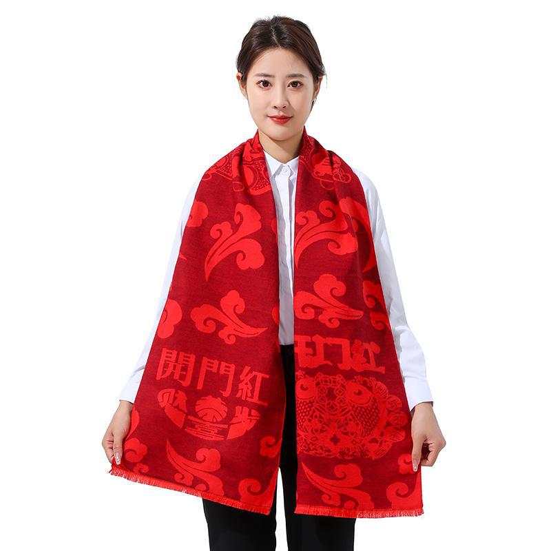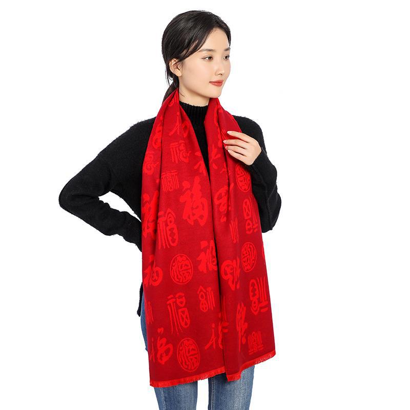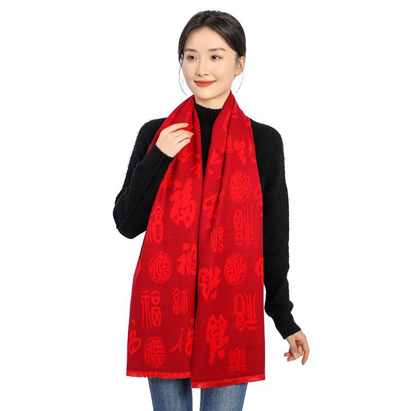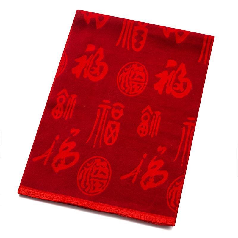 Bufanda roja china con el carácter Fu actividad de la empresa fiesta bordado Ping An Fu Reunión Anual festivo chal bufanda regalo