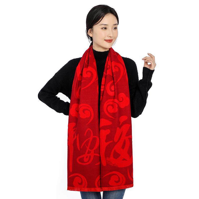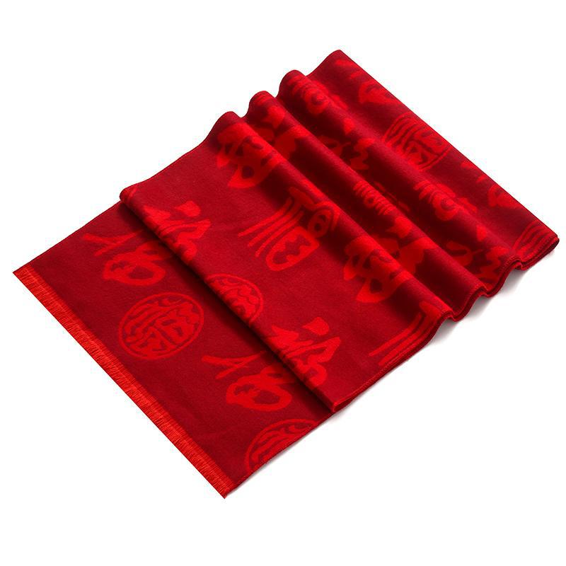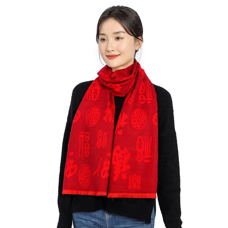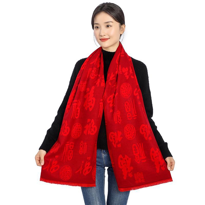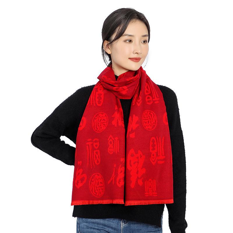 Bufanda roja china con el carácter Fu actividad de la empresa fiesta bordado Ping An Fu Reunión Anual festivo chal bufanda regalo
