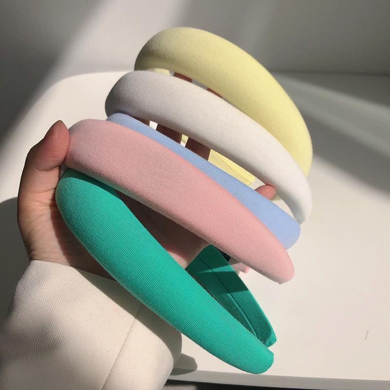 2024 Coreano Color Puro Paquete de Cabello Color Macaron Esponja Diadema de Ala Ancha Celebridad de Internet Ins Versátil Diadema para Salir Accesorio para el Cabello