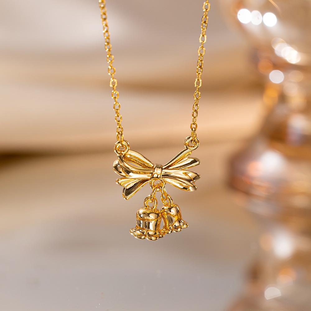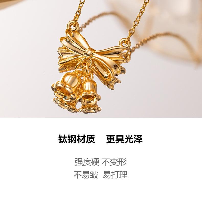 Collar de acero y titanio con orquídea y lazo para mujer, colgante de circonita microincrustada, diseño de nicho, cadena de clavícula popular en Internet.