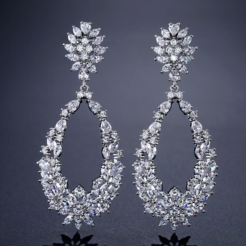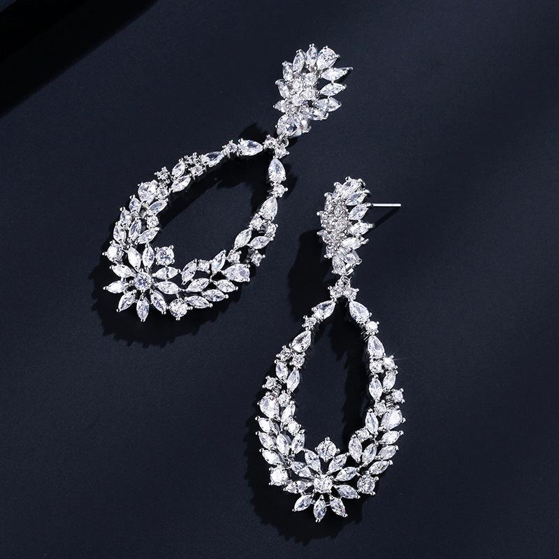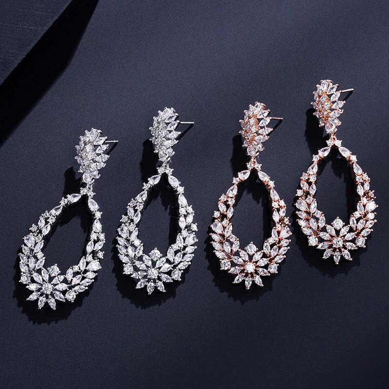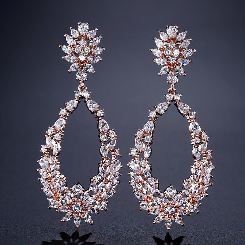 RAKOL - Pendientes huecos con flores geométricas exageradas y personalidad europea y americana para mujer, ligeros y de lujo con incrustaciones completas de circonita AAA