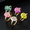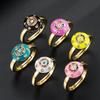 Anillo de hip-hop europeo y americano con personalidad exagerada, anillo de ojo de diablo de cobre chapado en oro con goteo de aceite, anillo F14220