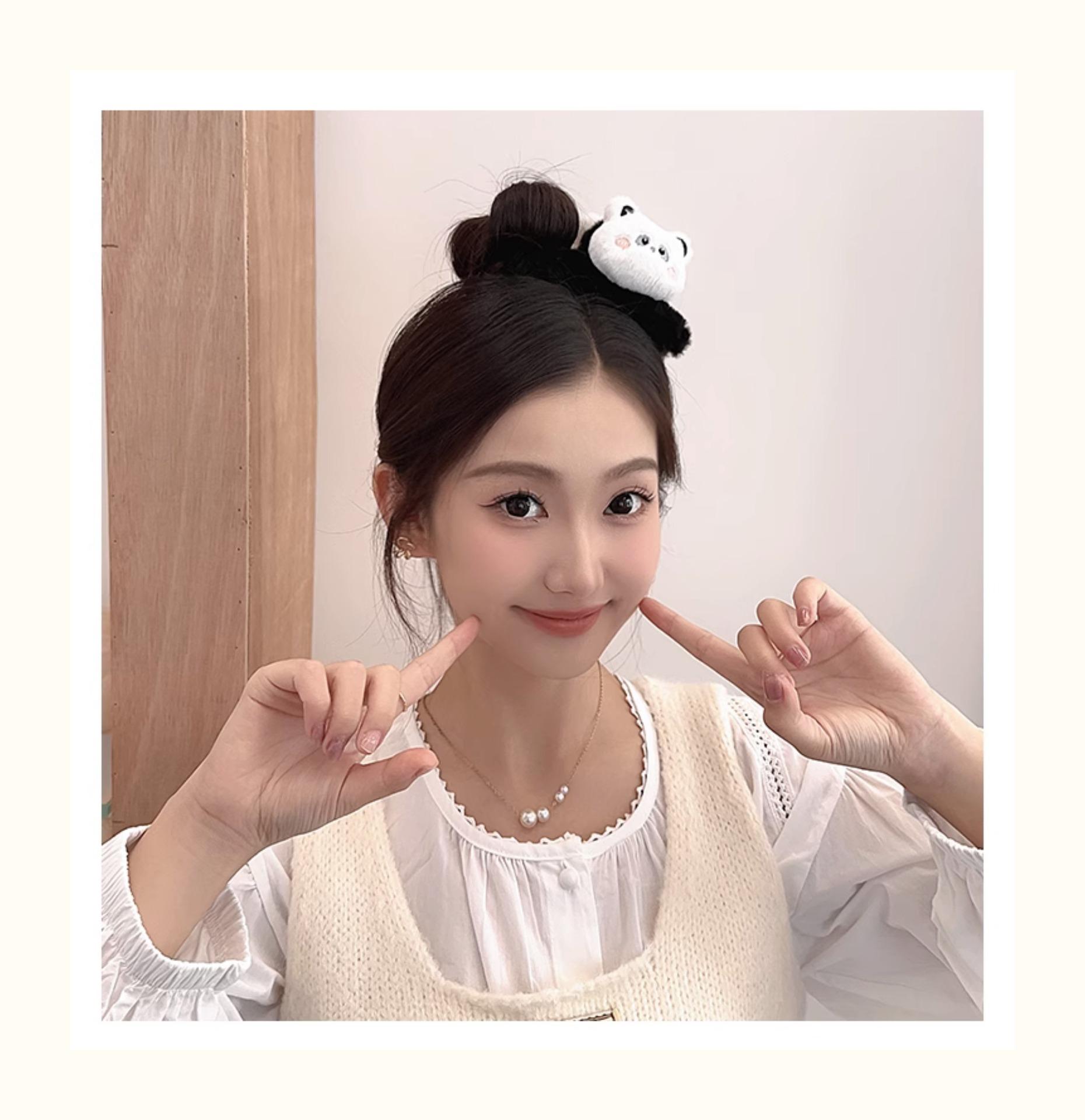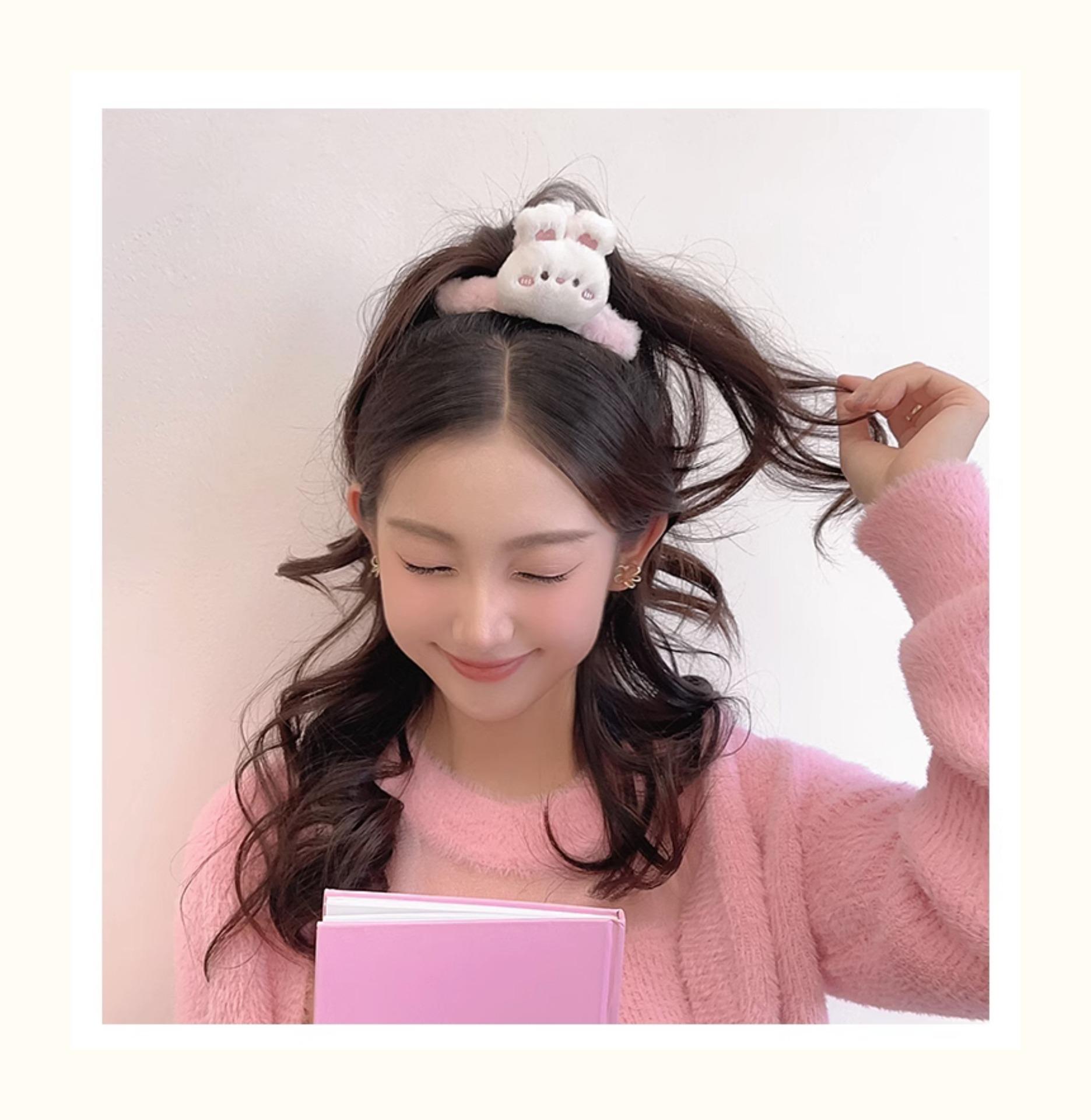 Coletero japonés de peluche con forma de cola de caballo para niña, bonito tocado con horquilla para otoño e invierno, accesorios para la cabeza de dibujos animados