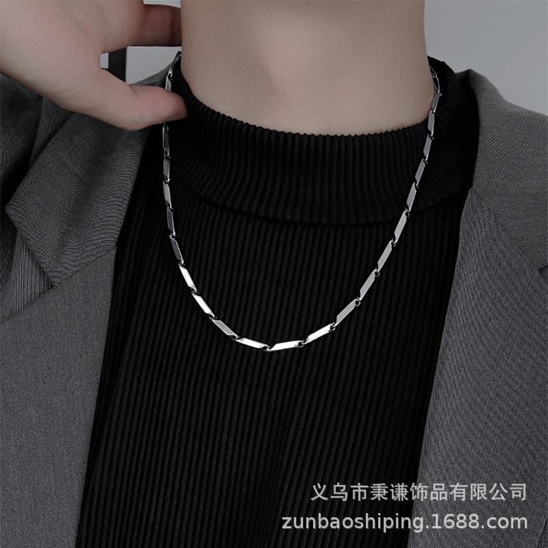 Collar de semillas de melón de acero inoxidable para hombres y mujeres, estilo frío, hecho a mano, cadena de diamantes, personalidad de hip hop, cadena de clavícula, cadena de suéter