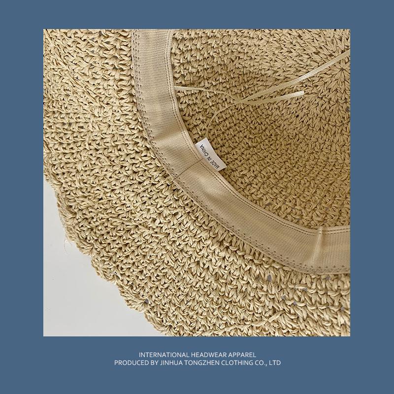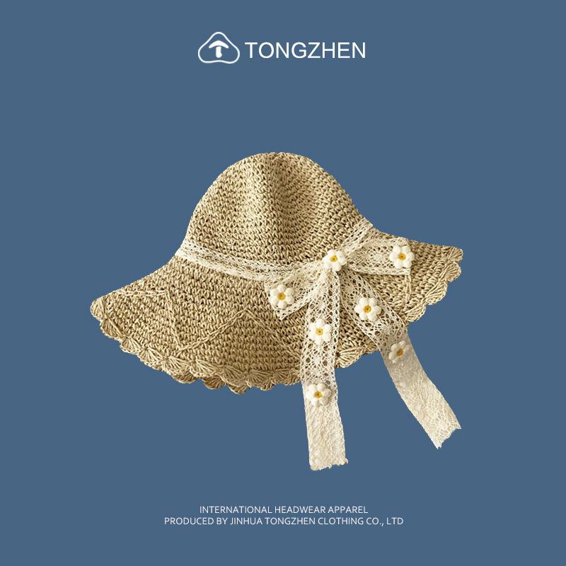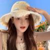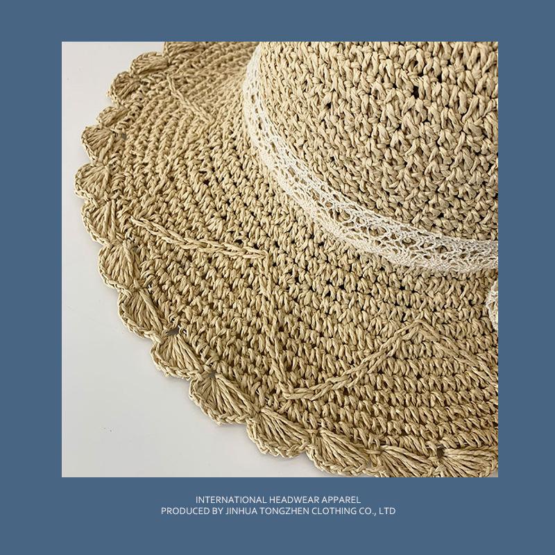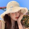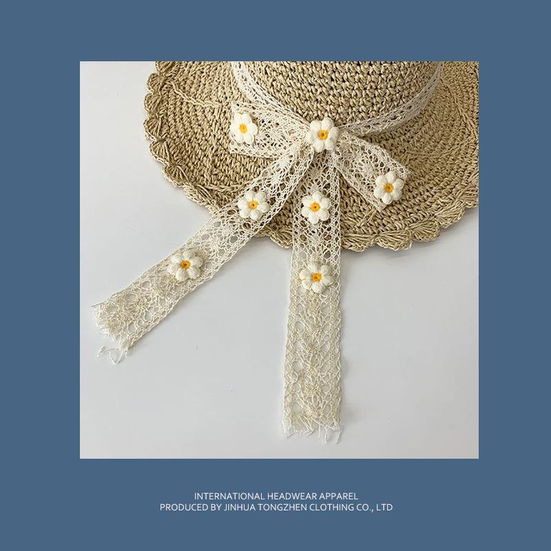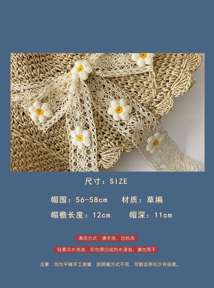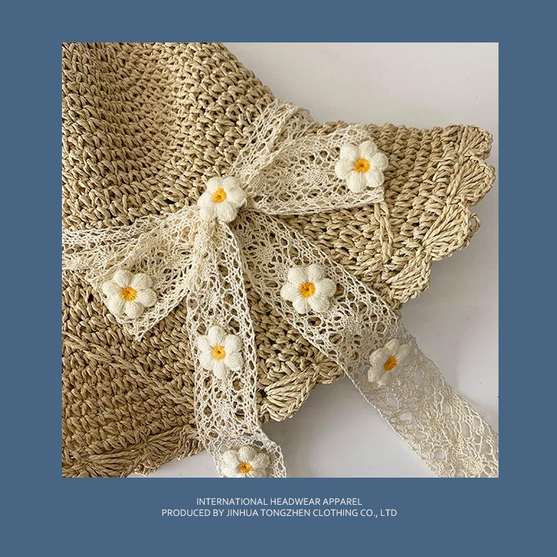 Sombrero de Paja con Lazo de Encaje de Flores Frescas Estilo Japonés para Mujer Vacaciones en la Playa Sombrero para el Sol Protector Solar Plegable Trendy