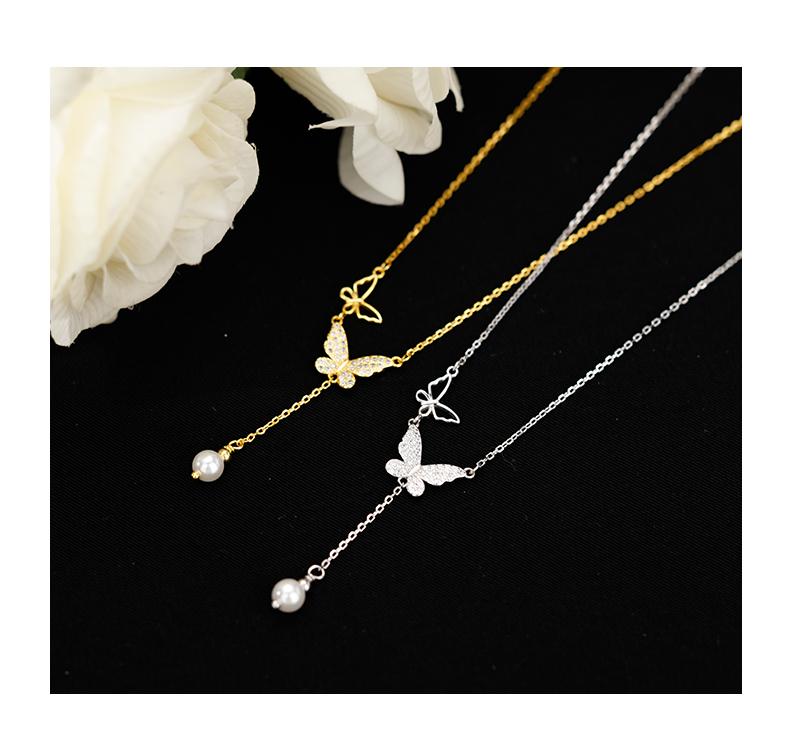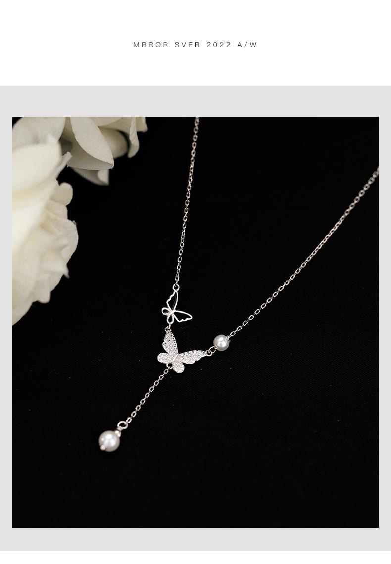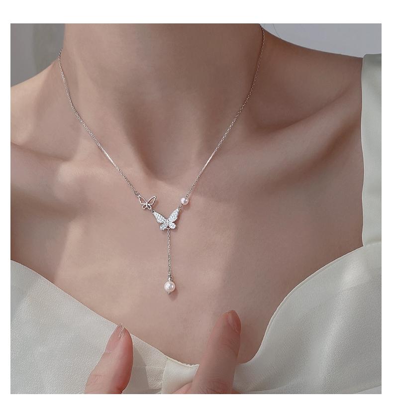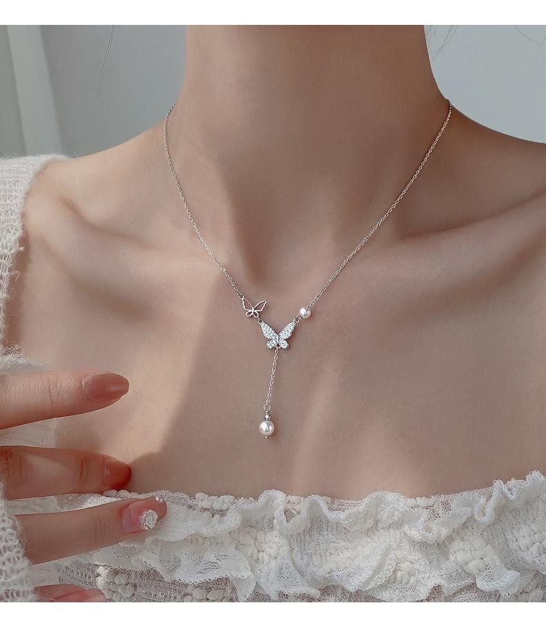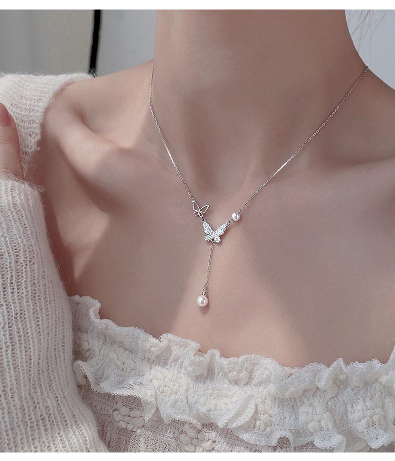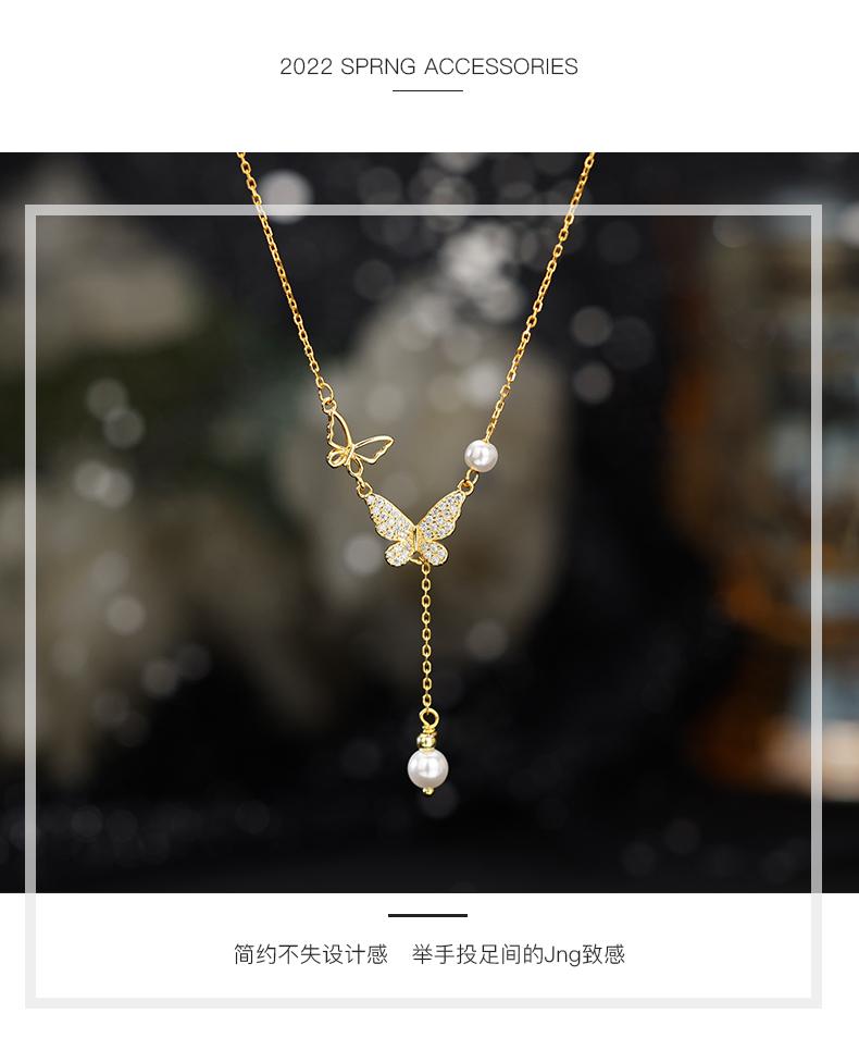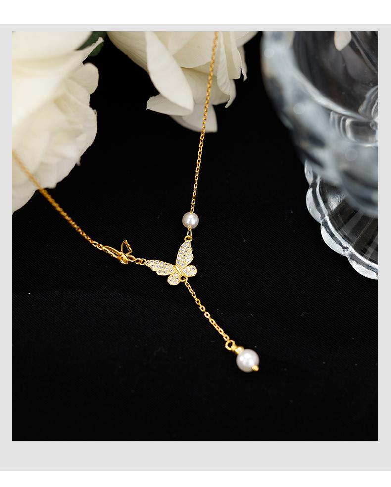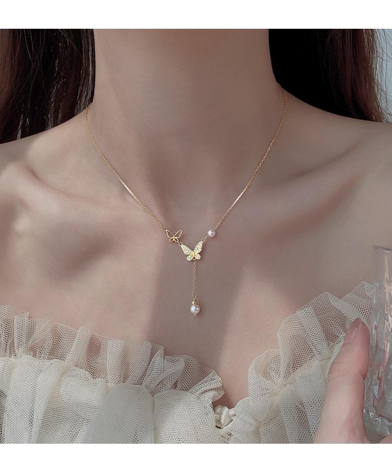 Collar con borlas de mariposa y diamantes para mujer, nuevo estilo 2022, lujoso y ligero, de nicho, de alta calidad, con cadena de clavícula de perlas, collar de celebridades de Internet.