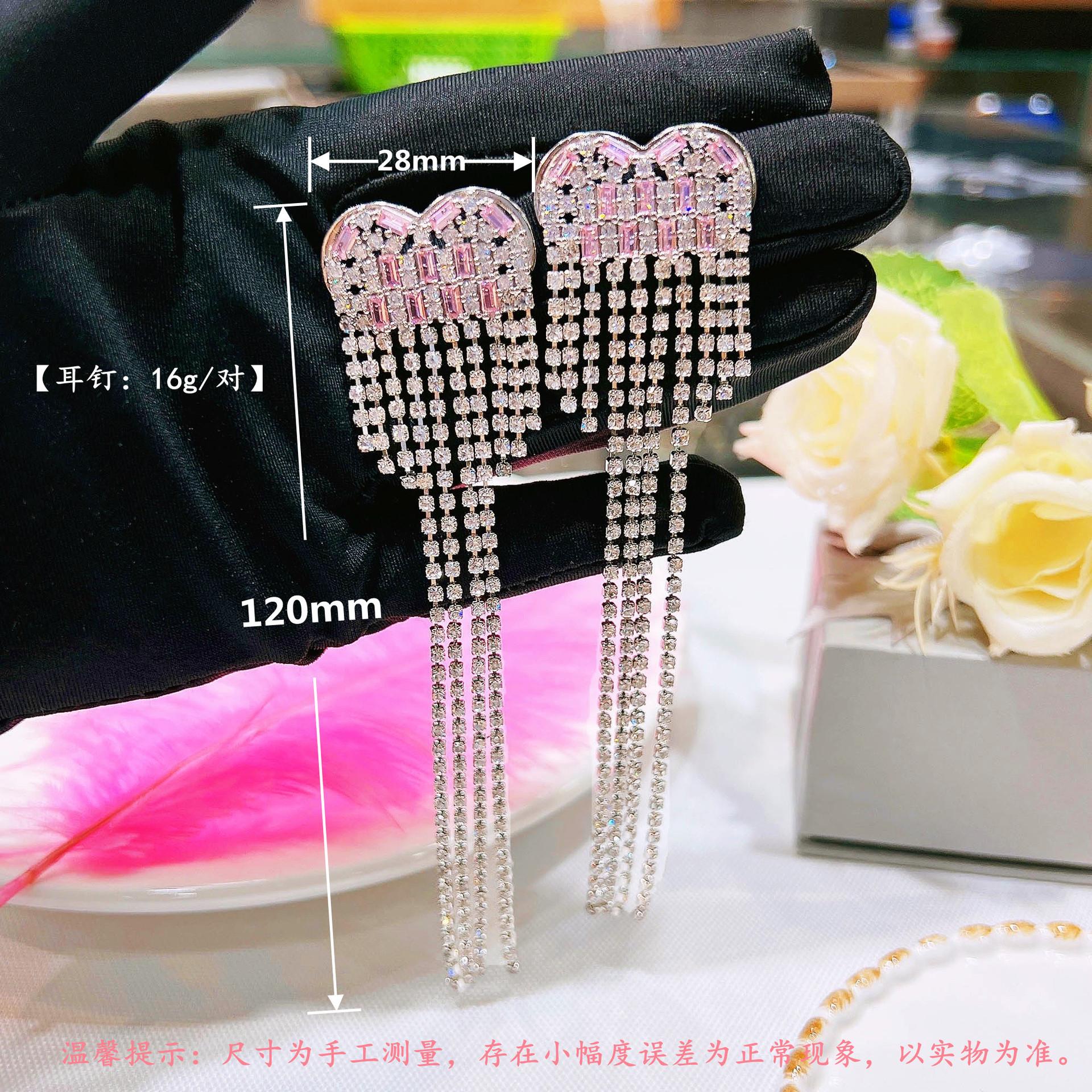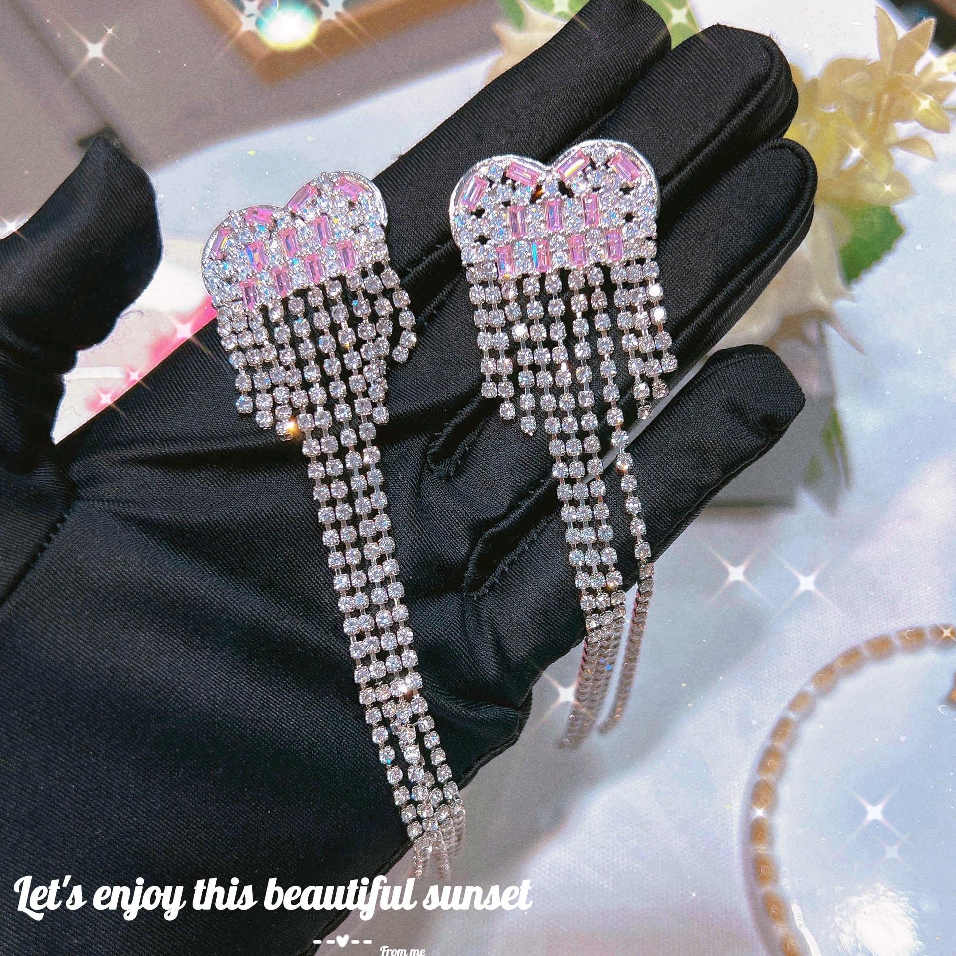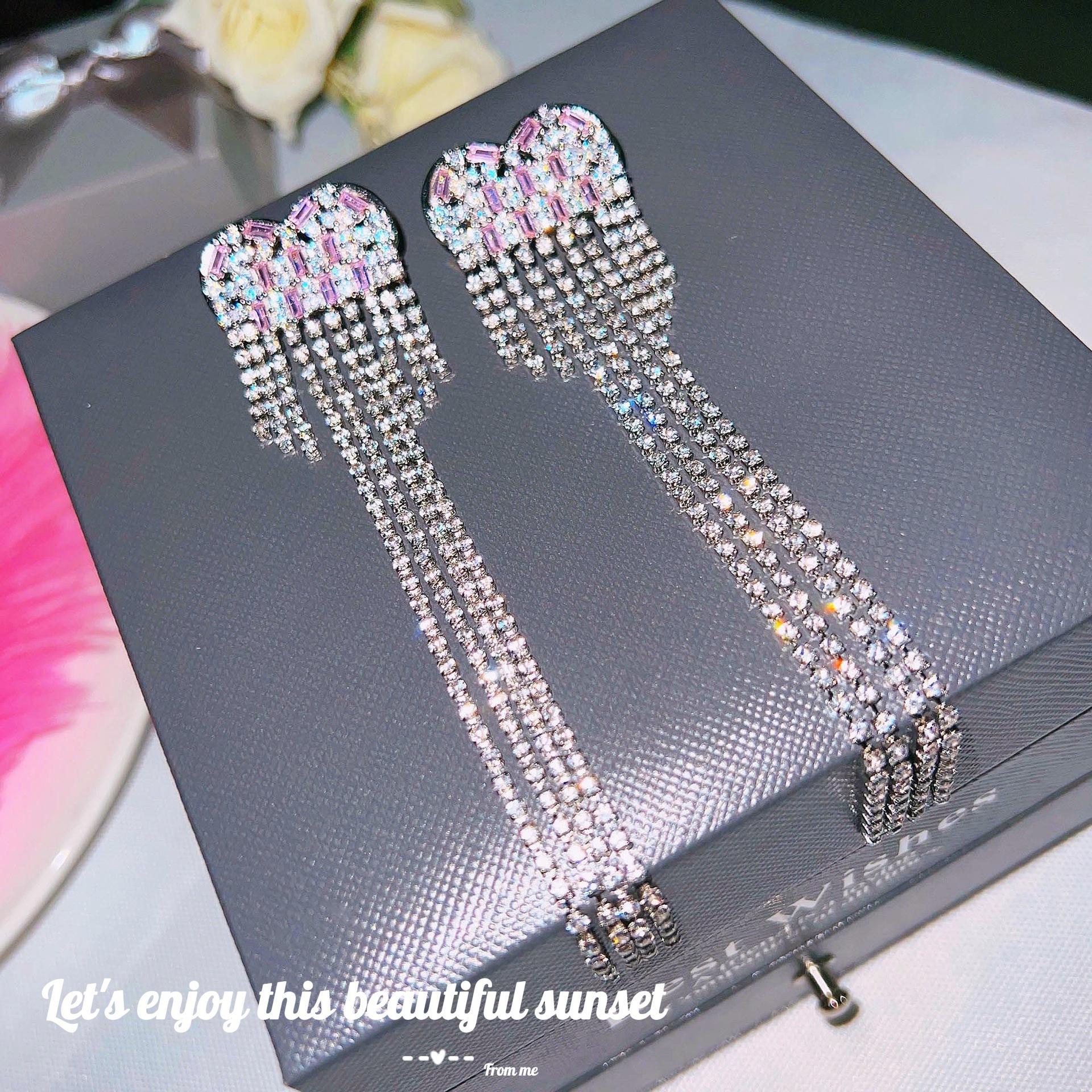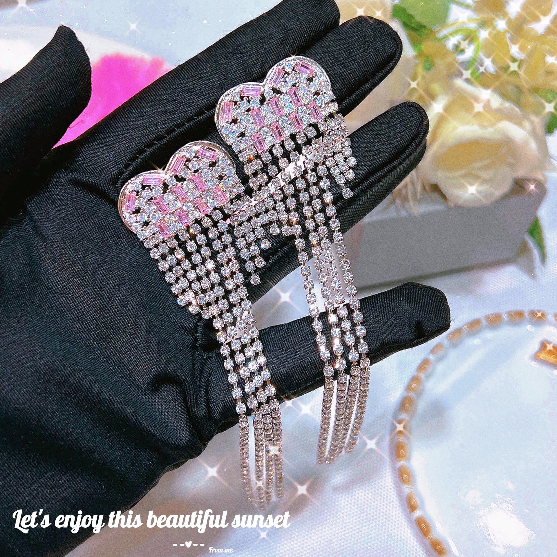 Pink White Diamond long tassel earrings [a pair of price]]