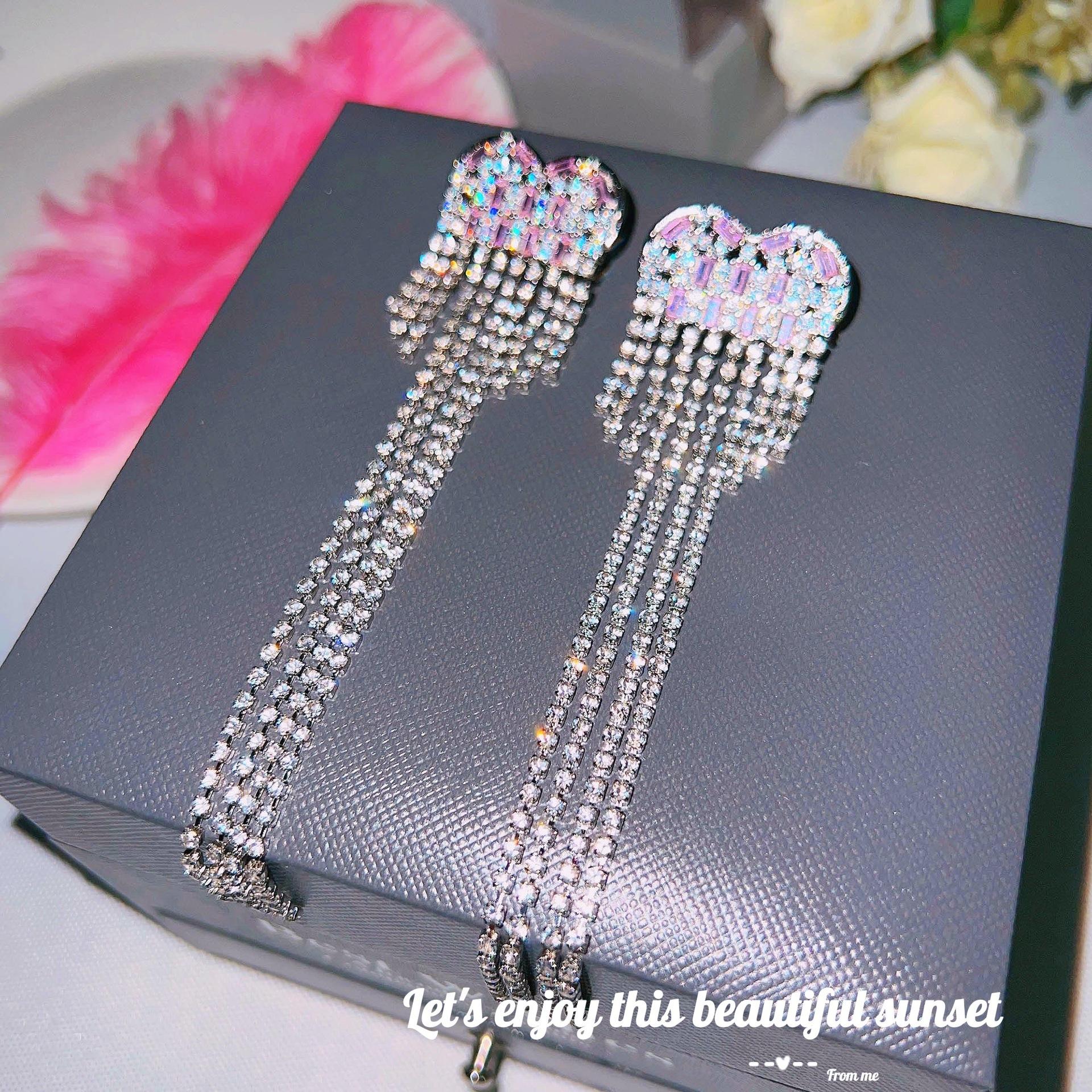 Pendientes largos de lujo con borlas de circonitas y destellos de amor, de estilo vintage, con citas, nuevos y exagerados.