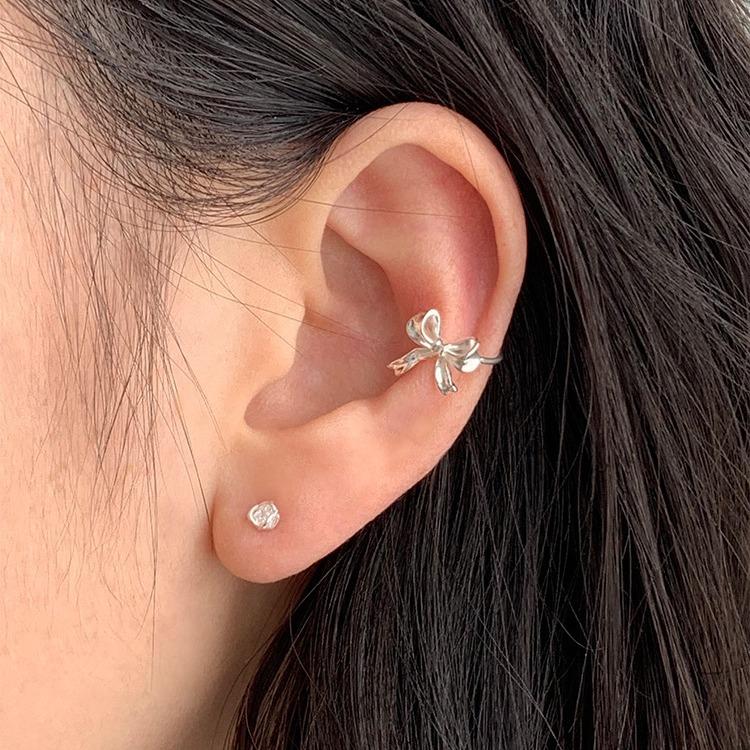 Pendientes de clip con forma de oreja de lazo coreano para mujer, bonitos, modernos y delicados, con diseño novedoso, accesorios.