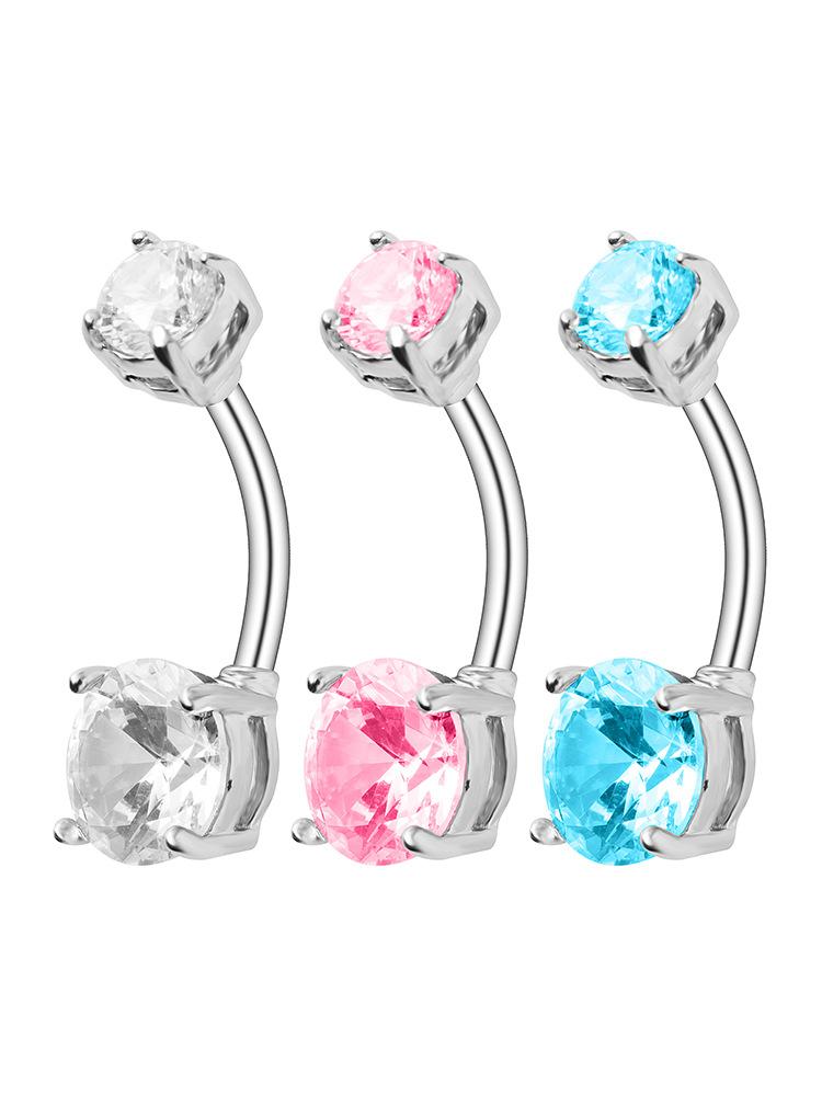 Anillo de ombligo de acero inoxidable con doble circonita tricolor, piercing para el ombligo, hebilla para el ombligo, joyería para perforaciones, transfronterizo de Amazon