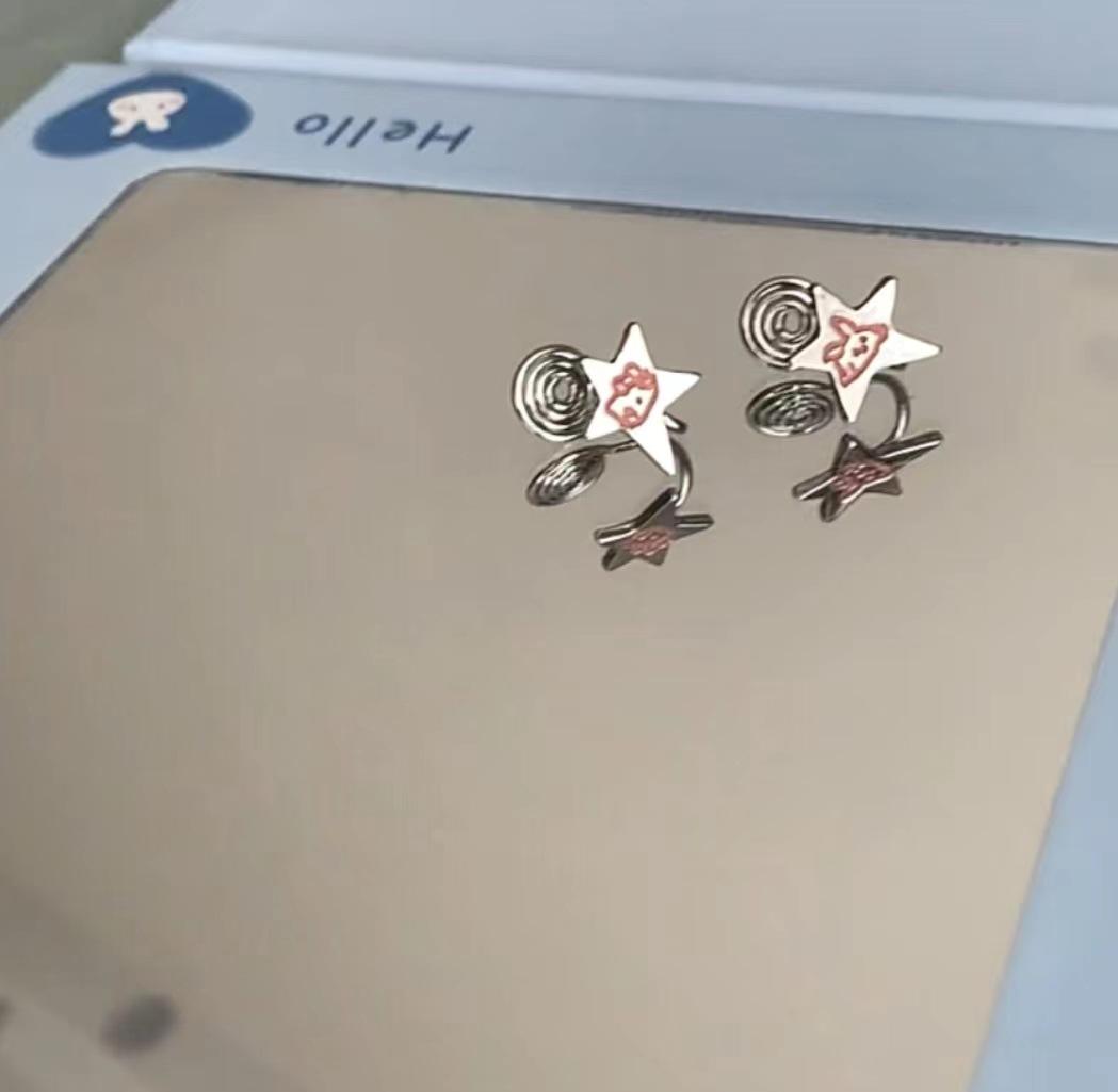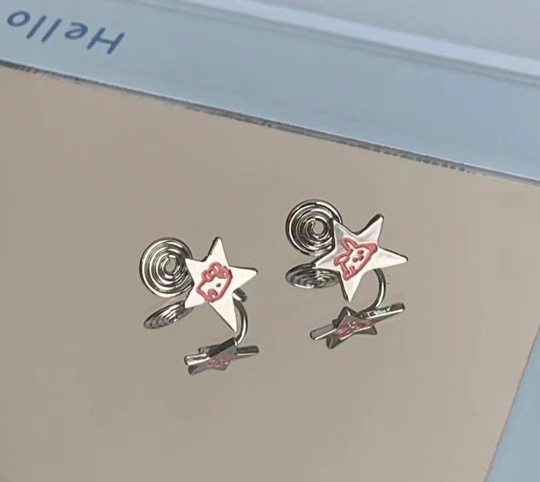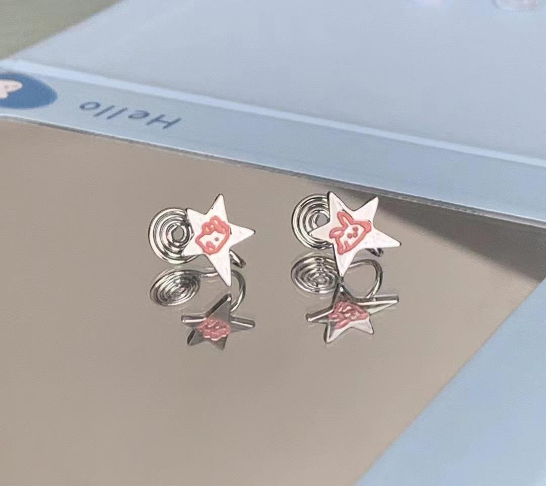 Aretes de conejo estrella para mujer, nuevos aretes únicos, diseño nicho, aretes de alta gama, clip para la oreja