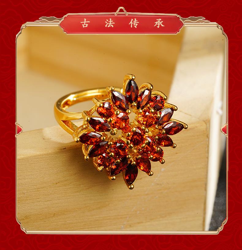 Anillo de girasol de oro arena estilo ins lujo ligero micro incrustado para damas nicho joyería fina accesorios Yiwu al por mayor