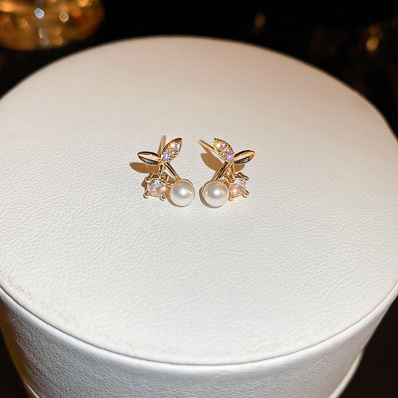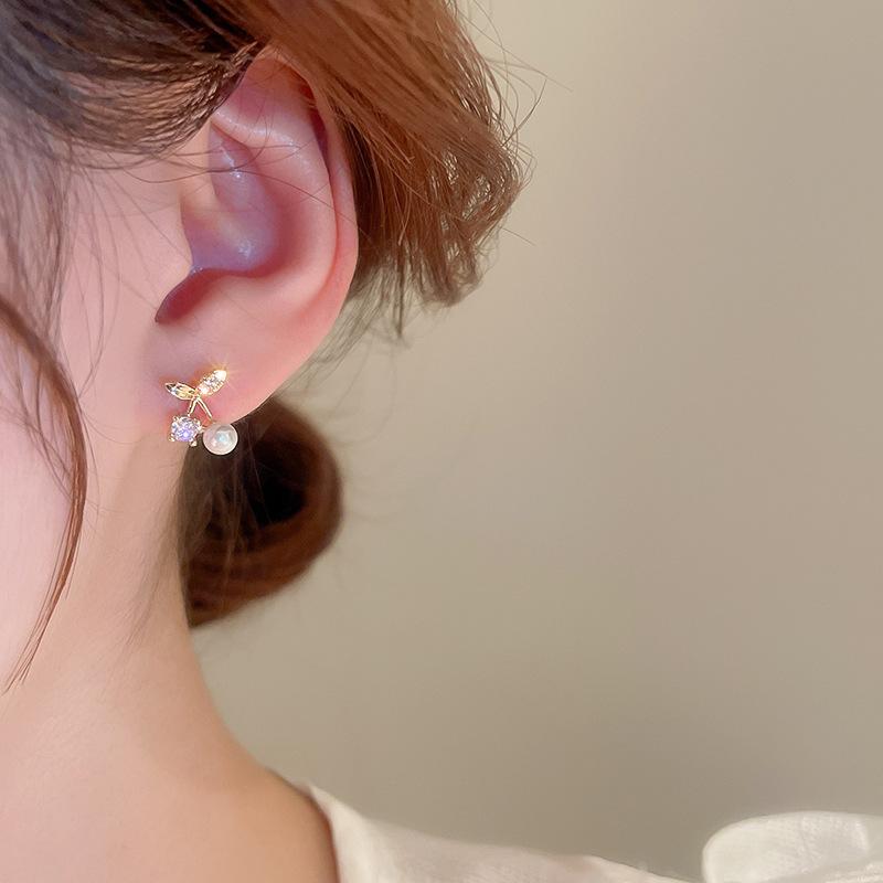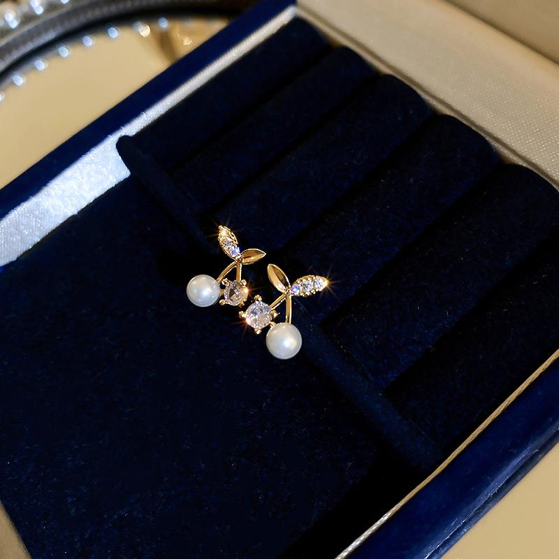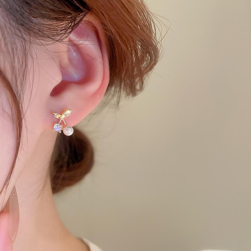 [Baño de Oro Real] Corea del Sur Cereza micro-incrustada perla moda fresca nicho diseño avanzado aretes