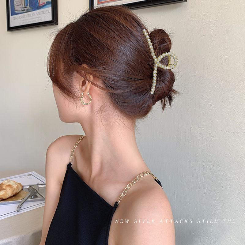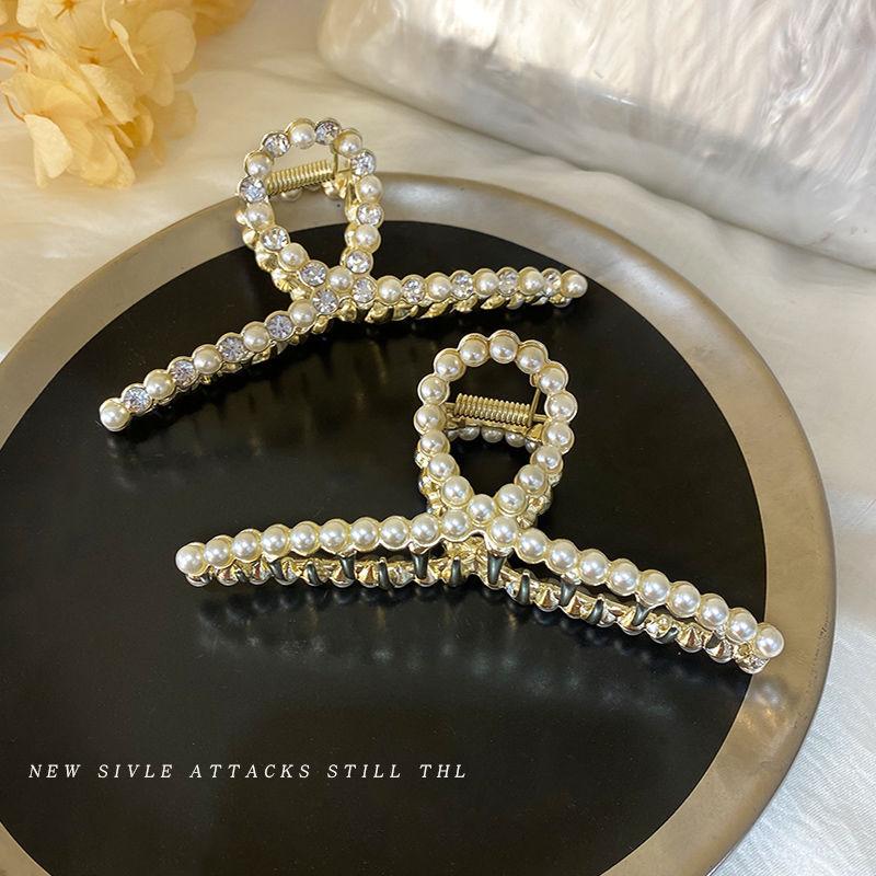 Horquilla de perla de estilo coreano con diamantes de imitación, pinza para el pelo de metal, pinza para el pelo para la parte trasera del pelo, pinza para la cabeza, pinza para la cabeza, pinza de tiburón, accesorios para el cabello