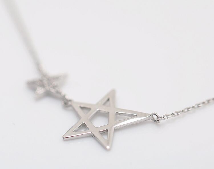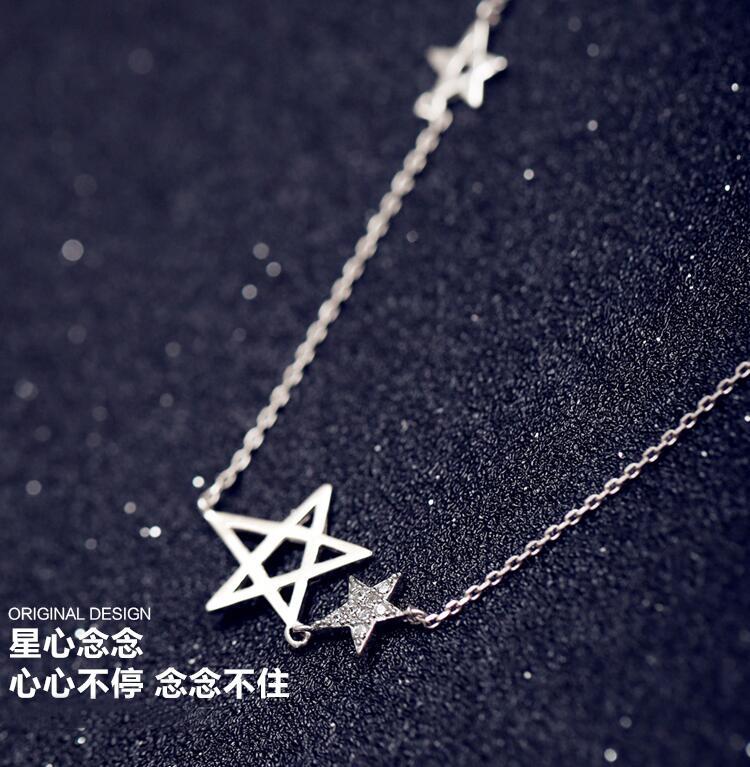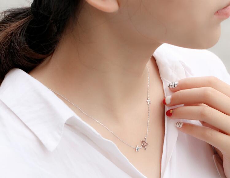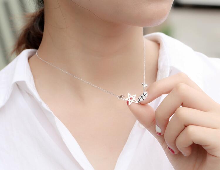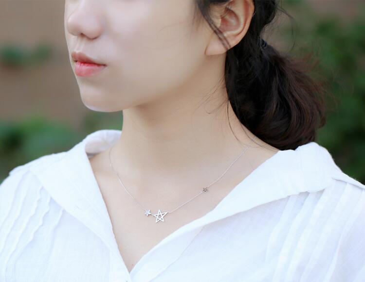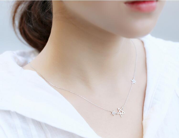 Collar de plata de ley S925 estilo coreano con estrella simple y microincrustaciones de cinco puntas, colgante, accesorios de joyería de plata para mujer.