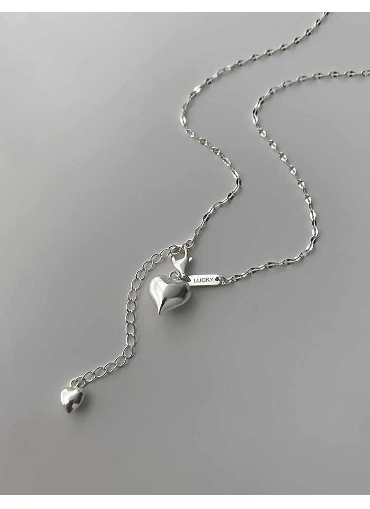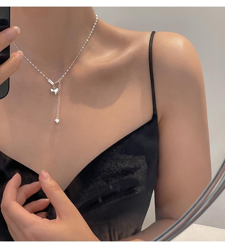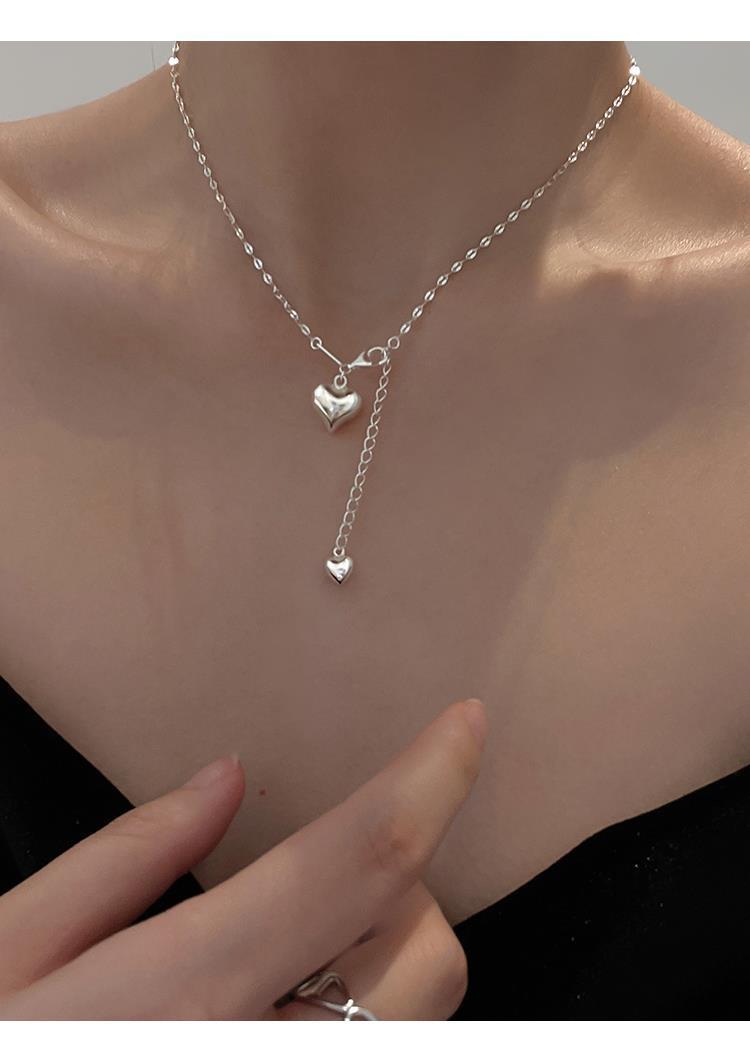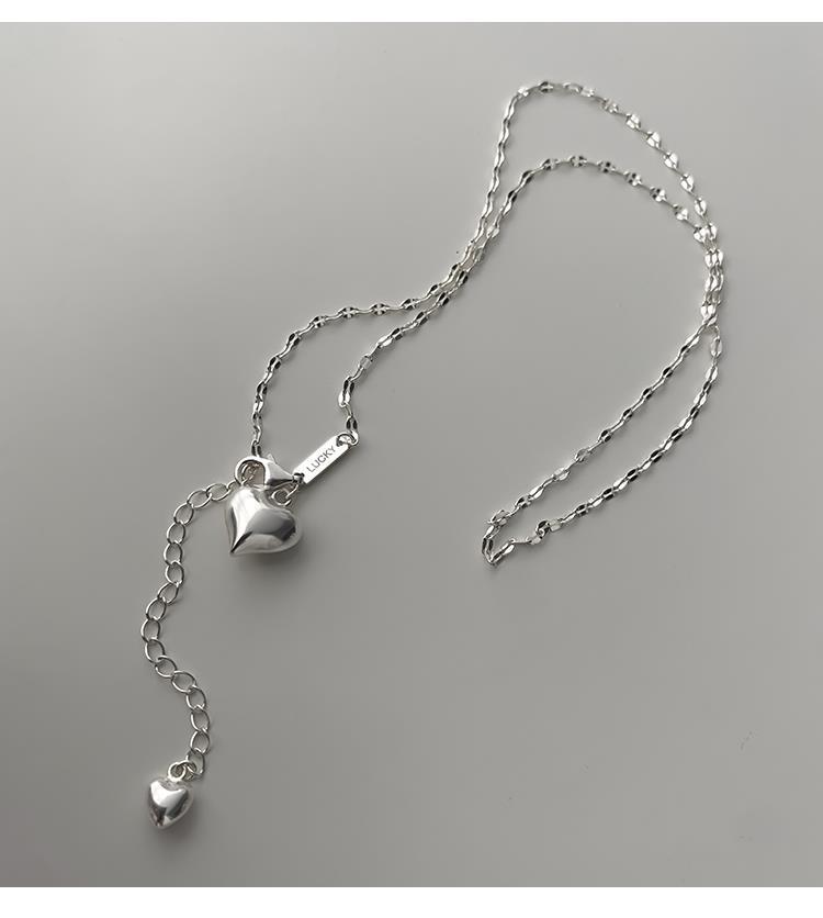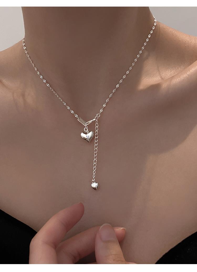 Collar Corazón Estéreo Plateado Cadena Clavícula Versátil de Verano para Mujer Diseño de Nicho Simple Ins Lujo Accesible Elegante y Exquisito