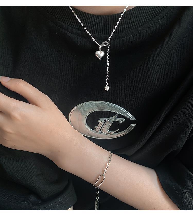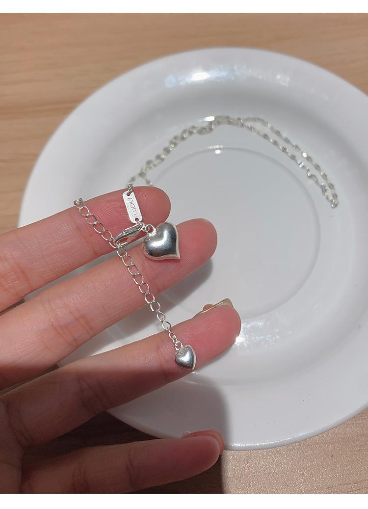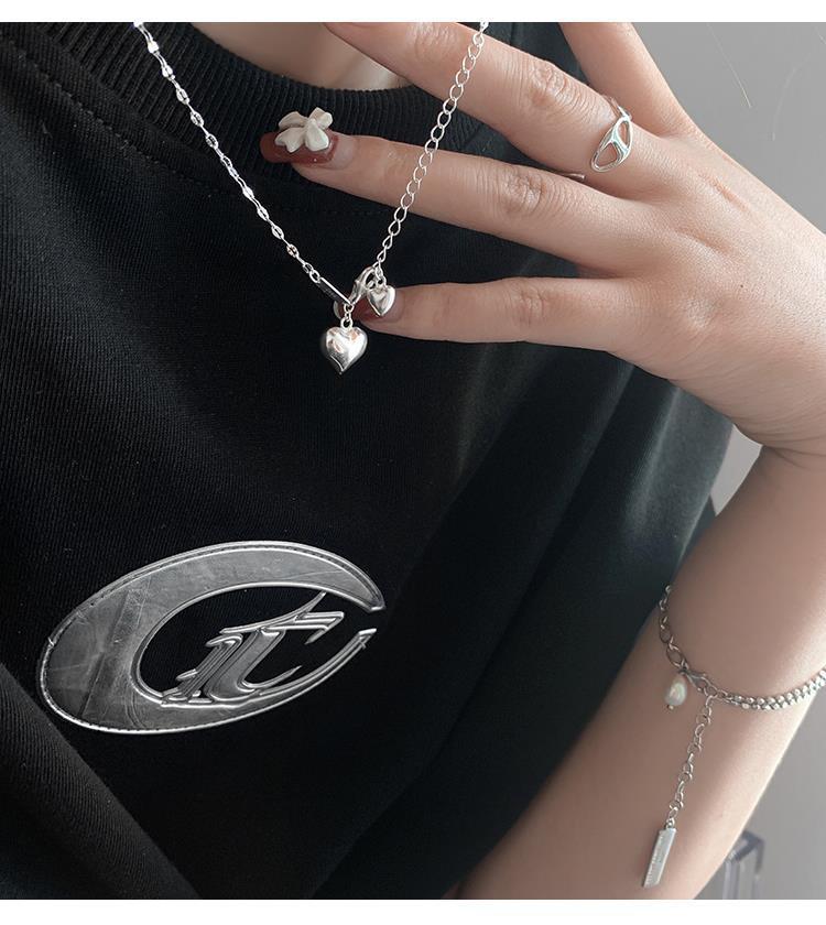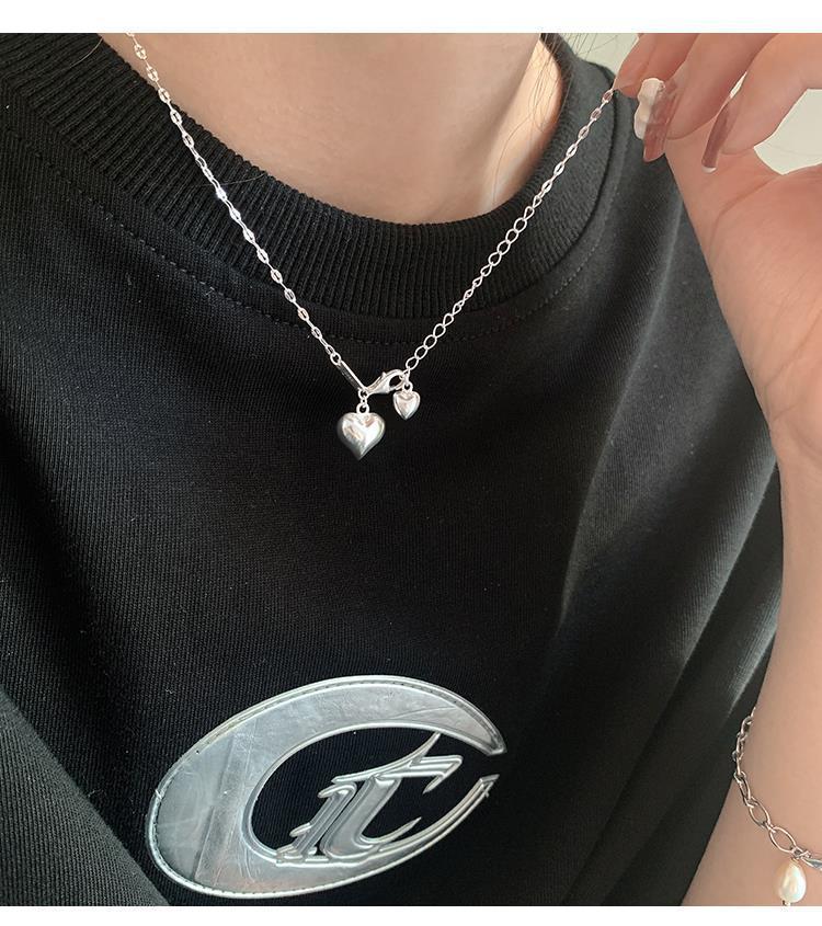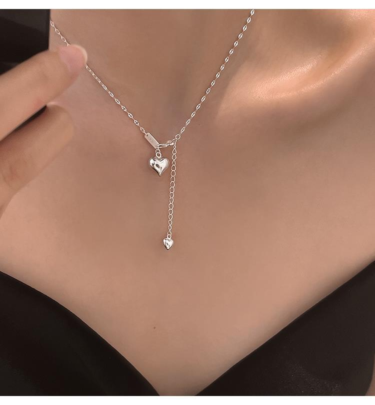 Collar Corazón Estéreo Plateado Cadena Clavícula Versátil de Verano para Mujer Diseño de Nicho Simple Ins Lujo Accesible Elegante y Exquisito