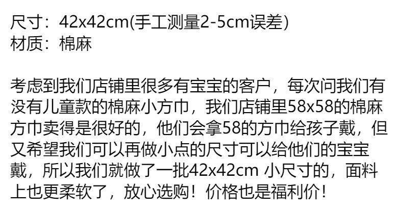 Pañuelo cuadrado pequeño de algodón y lino para niños 42x42cm suave transpirable absorbente de sudor pañuelo protector solar toalla de saliva