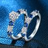 Fábrica venta al por mayor de joyería pequeña anillo Seiko de lujo de alta gama anillo de pareja anillo de circonita puntiaguda azul joyería para mujer