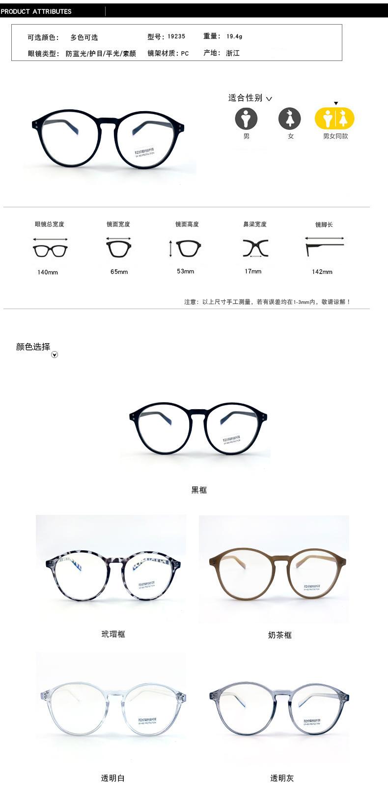 2021 nuevo armazón redondo retro liso para miopía, gafas anti-luz azul, hombres y mujeres, tendencia simple, armazón de gafas liso