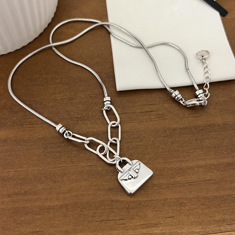 Collar con colgante de bolso sólido con diseño de nicho de estilo coreano, personalidad de moda para mujer, cadena de clavícula de alta calidad que combina con todo, moda
