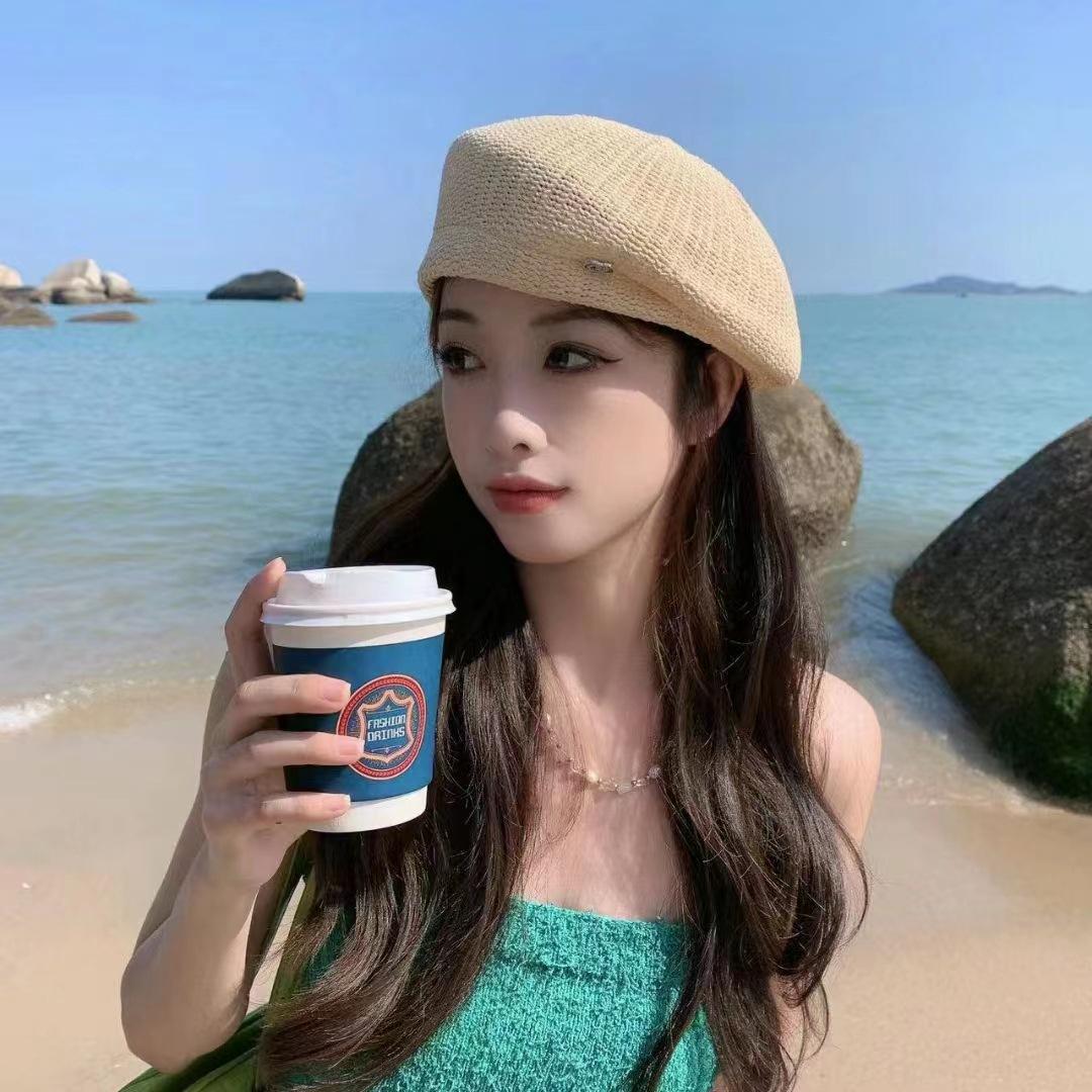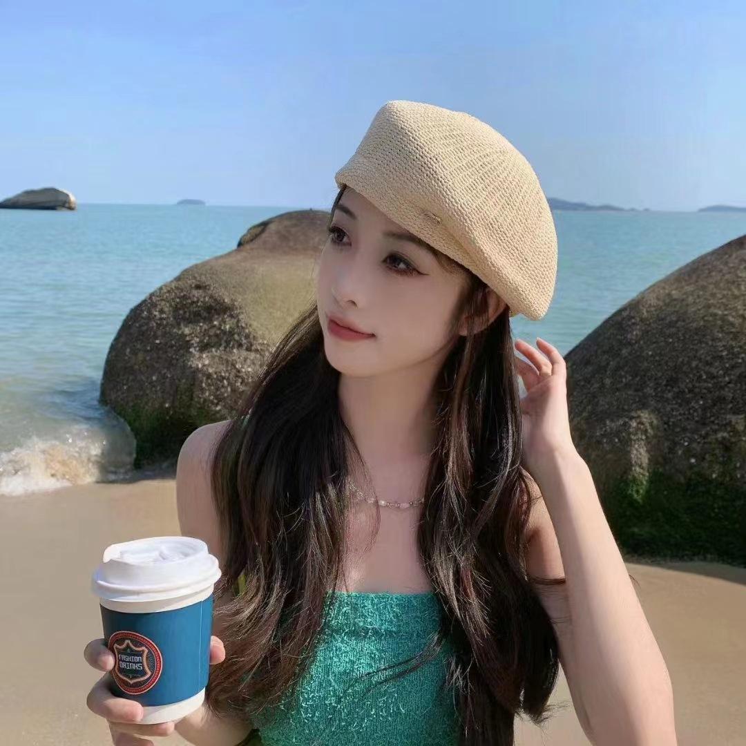 2023 K hermana mayor (Nuevo estilo) boina de lino ligera transpirable cómoda temperamento Joker amigable con la piel sombrero de pintor