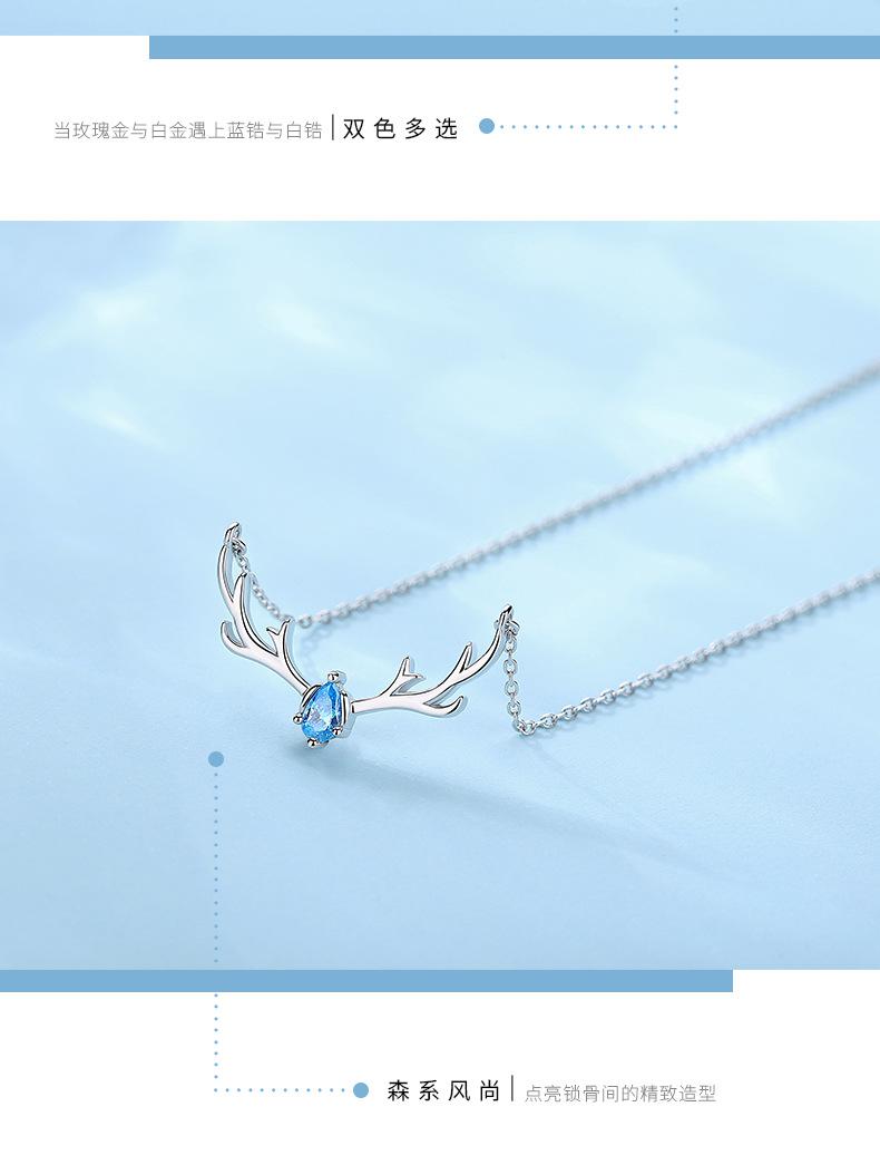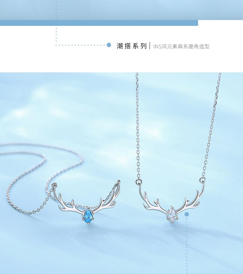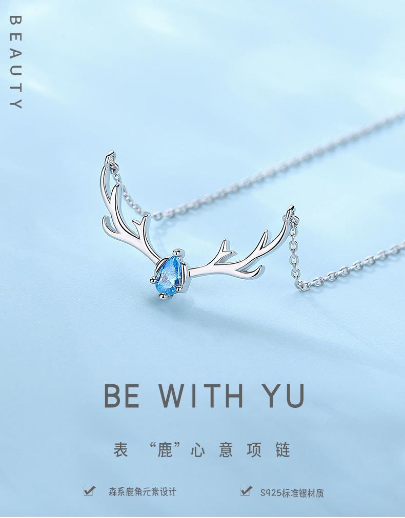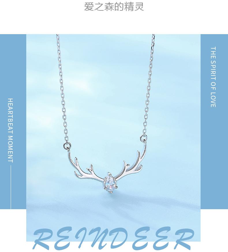 Collar de plata esterlina s925 de ciervo hasta el final para mujer, estilo coreano, cadena de clavícula de internet, colgante simple de asta, joyería navideña
