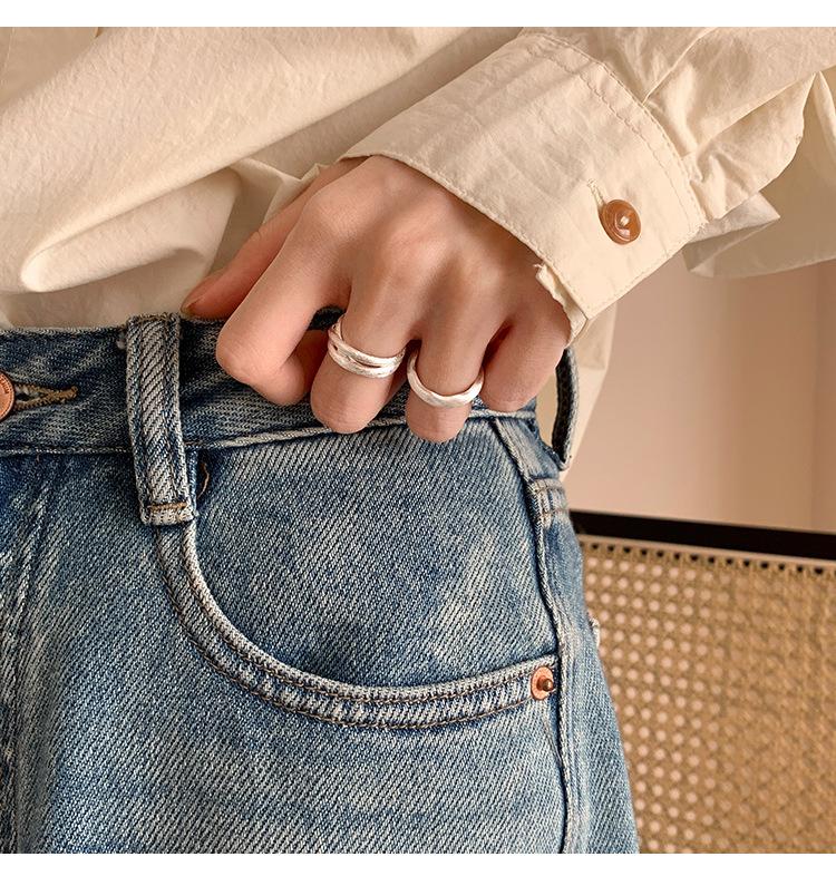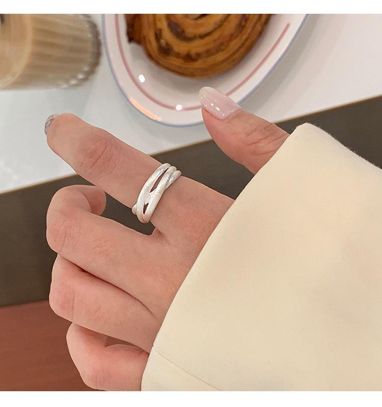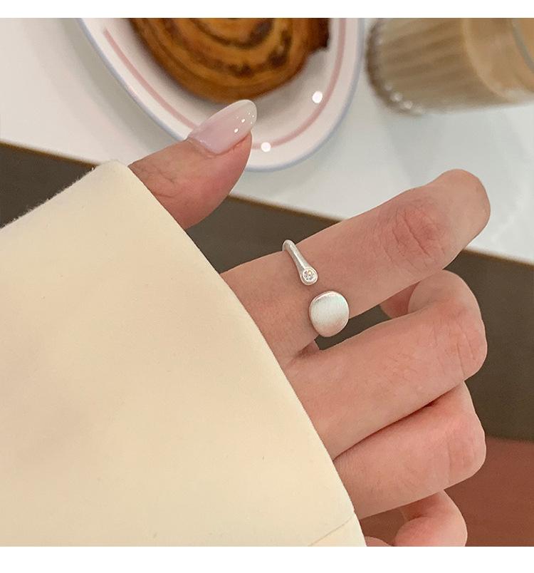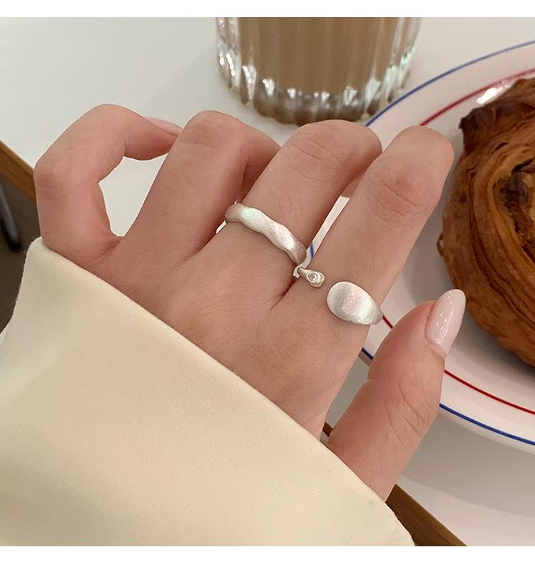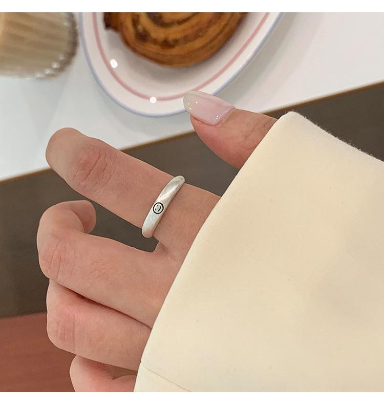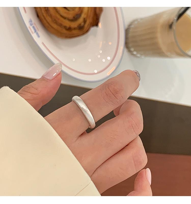 Anillo mate de alta calidad para mujer, moda simple, temperamento versátil, personalidad, anillo abierto de plata S925, anillo de dedo ins para comida