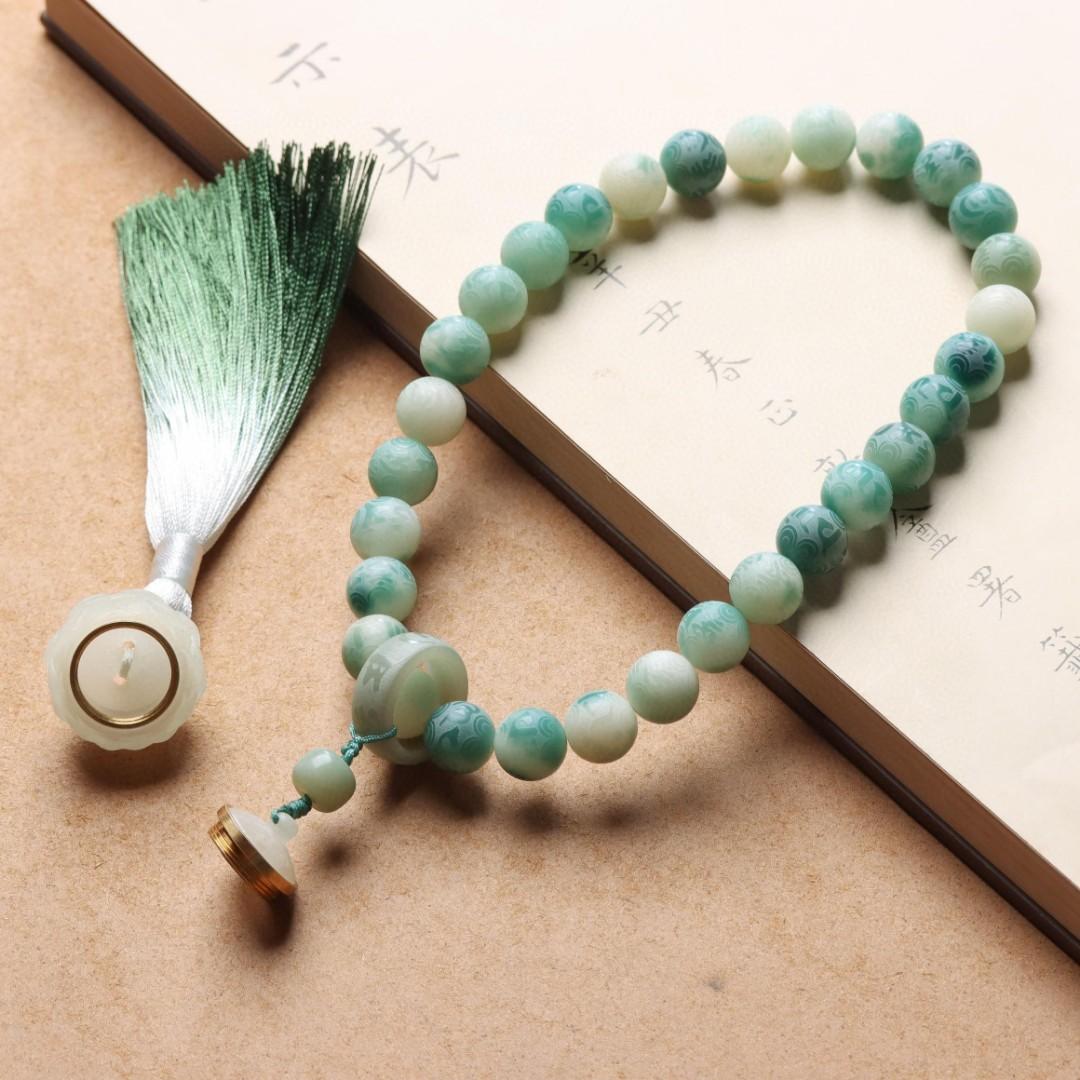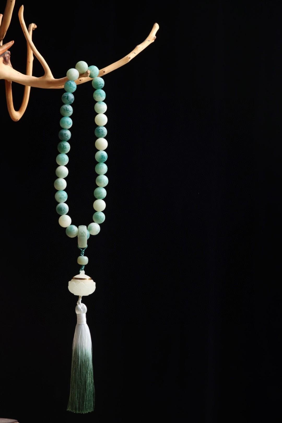 Tallado Degradado de Piel Yin Natural Seis Caracteres Palabras Verdaderas Colgante de Raíz de Bodhi Loto Cuerda de Mano de Raíz de Bodhi Rosario de Estilo Antiguo