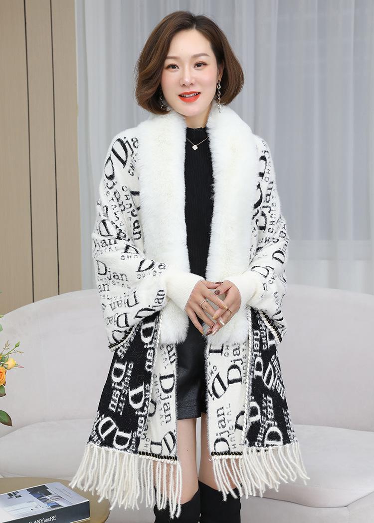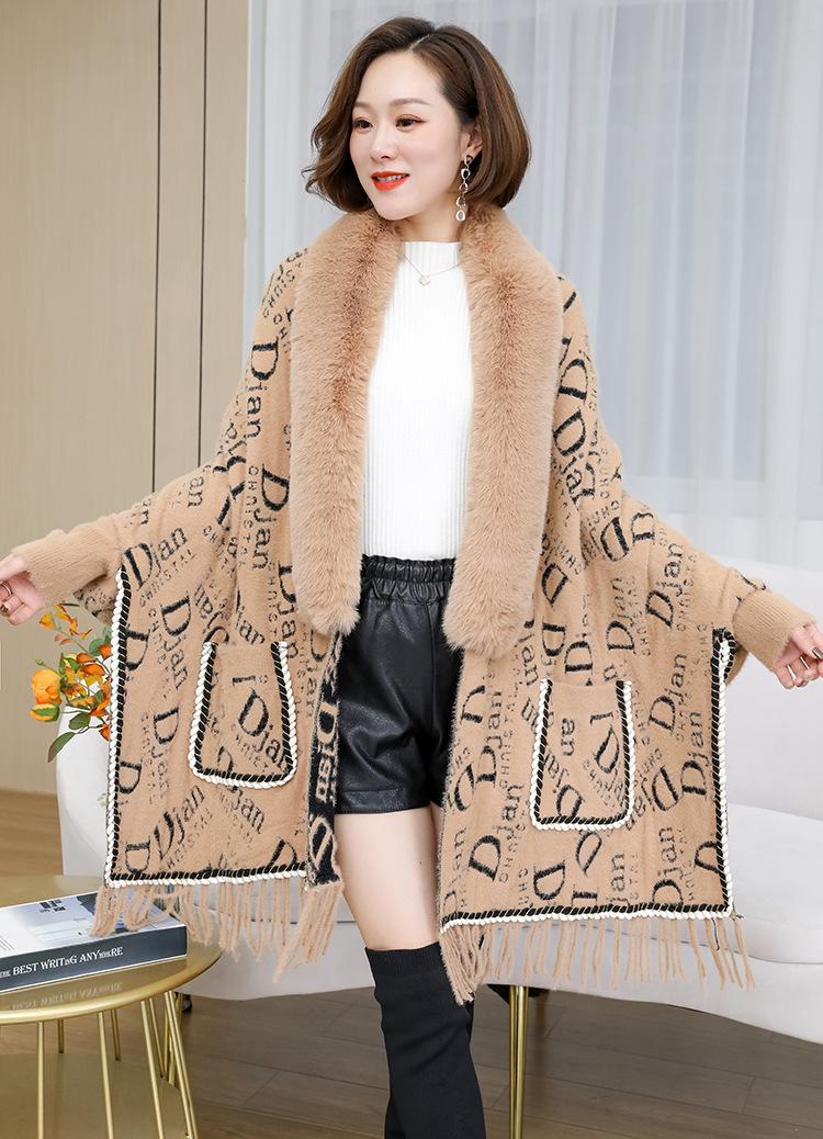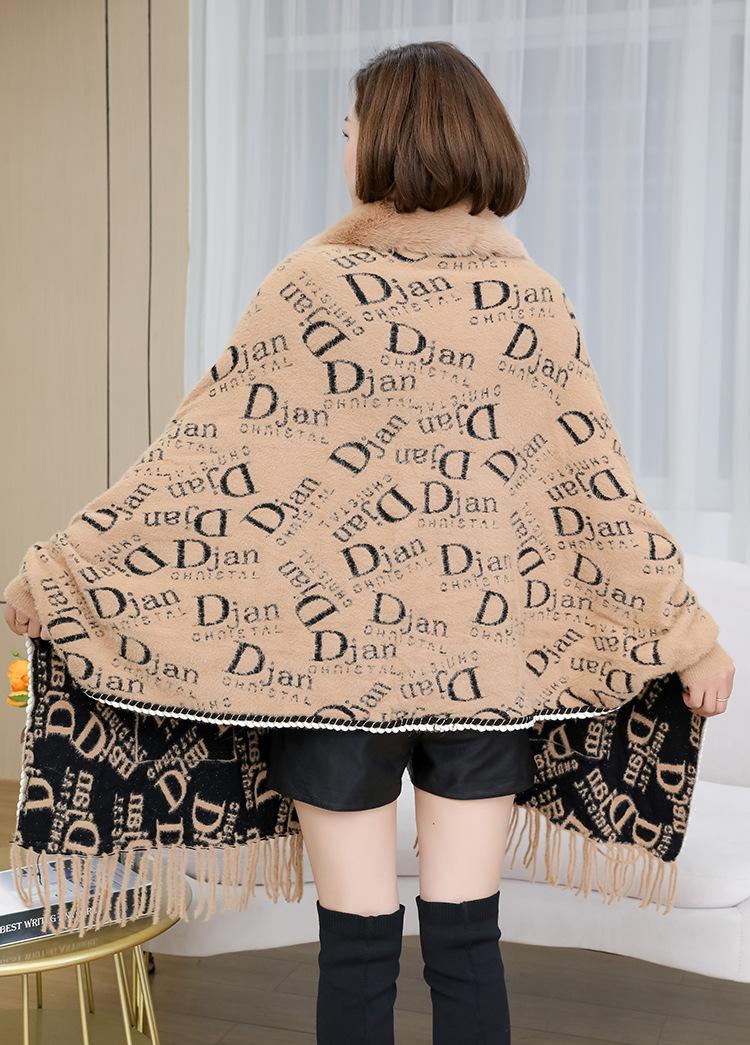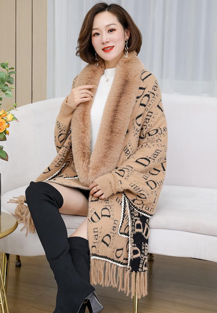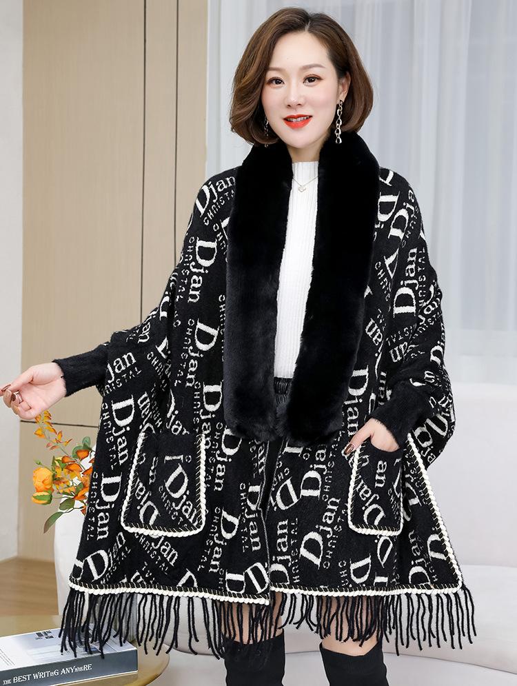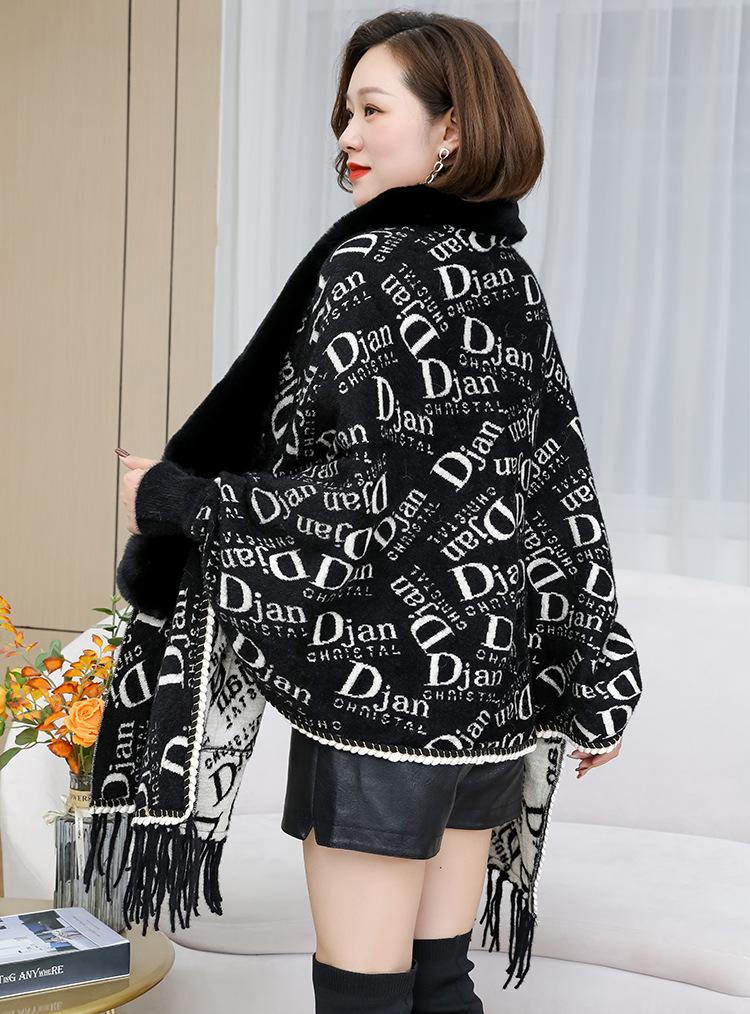 Capa de terciopelo de visón de imitación para mujer, otoño e invierno, nueva capa de piel gruesa con cuello de piel de conejo y murciélago, suelta, de gran tamaño