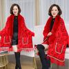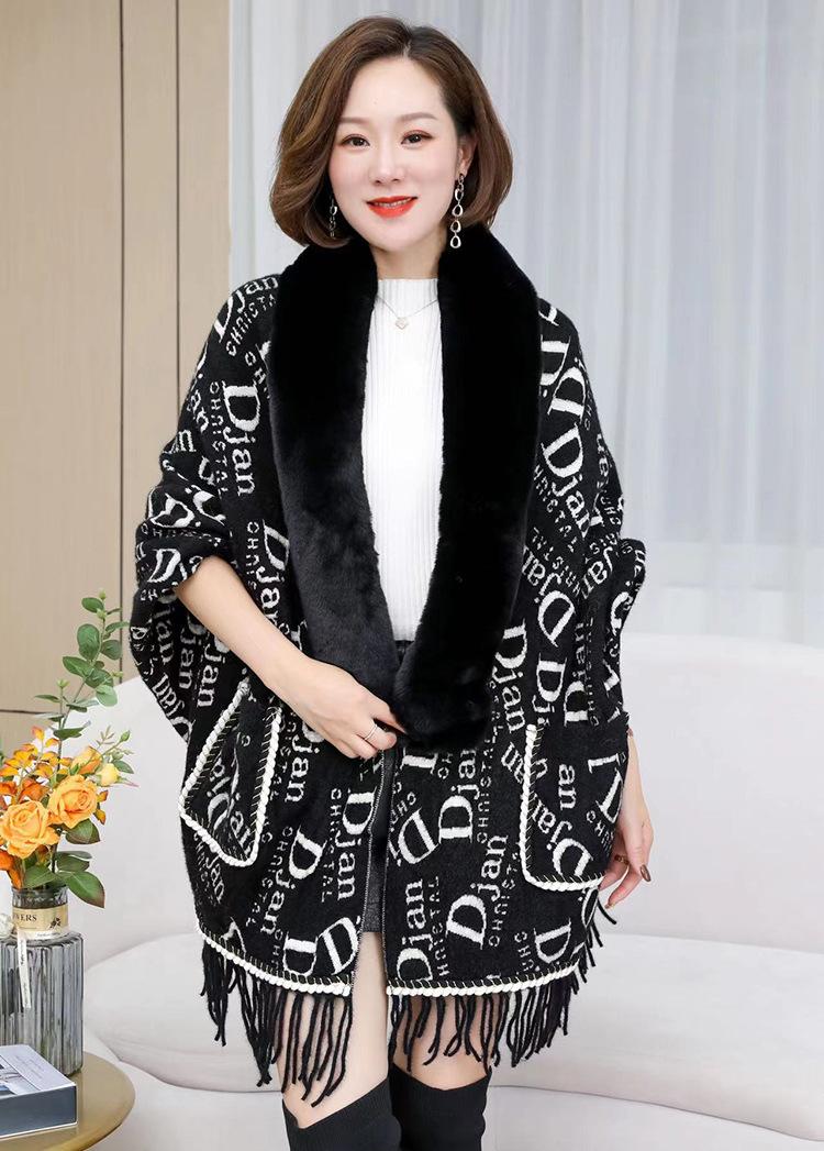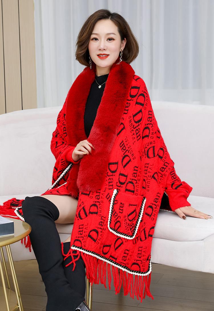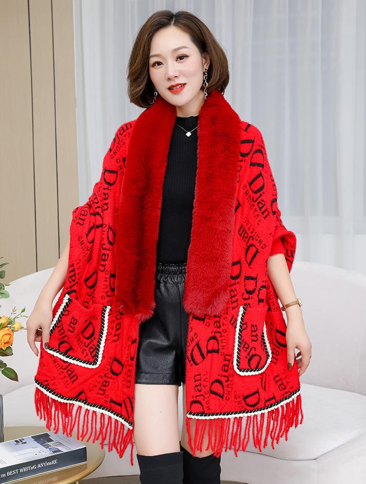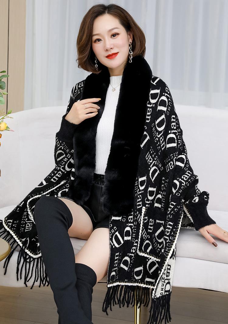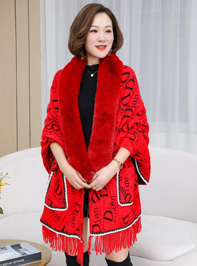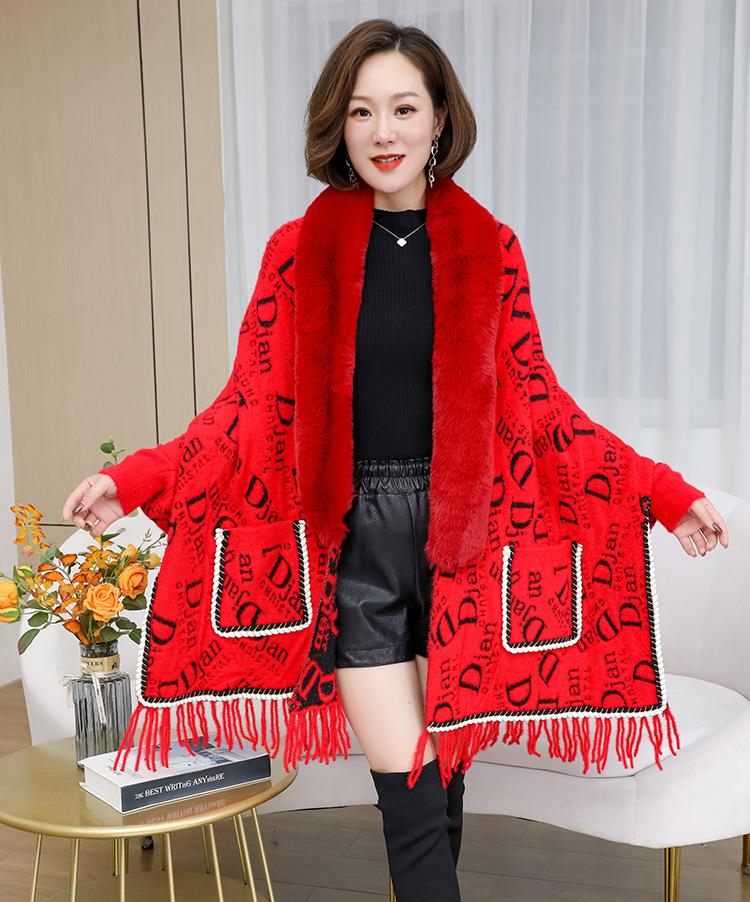 Capa de terciopelo de visón de imitación para mujer, otoño e invierno, nueva capa de piel gruesa con cuello de piel de conejo y murciélago, suelta, de gran tamaño