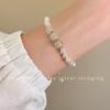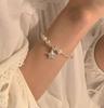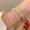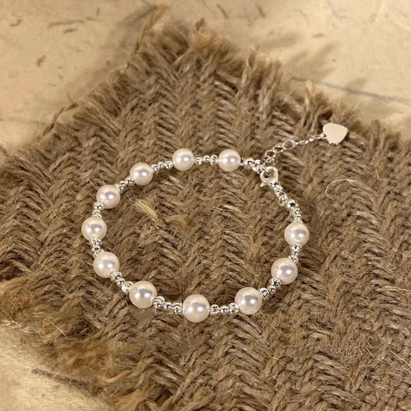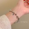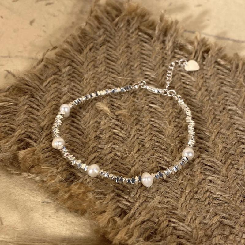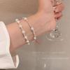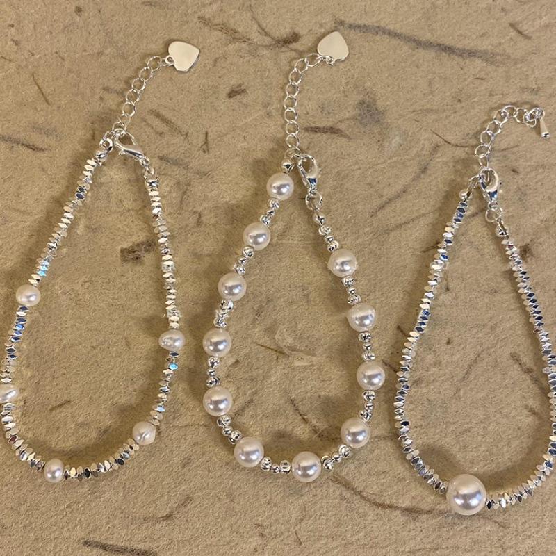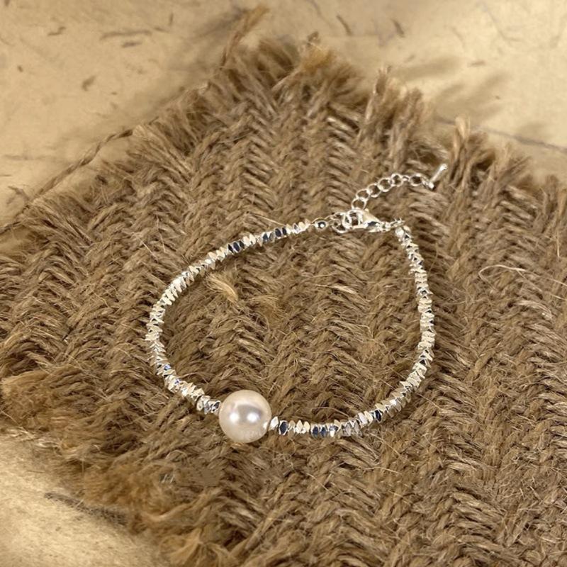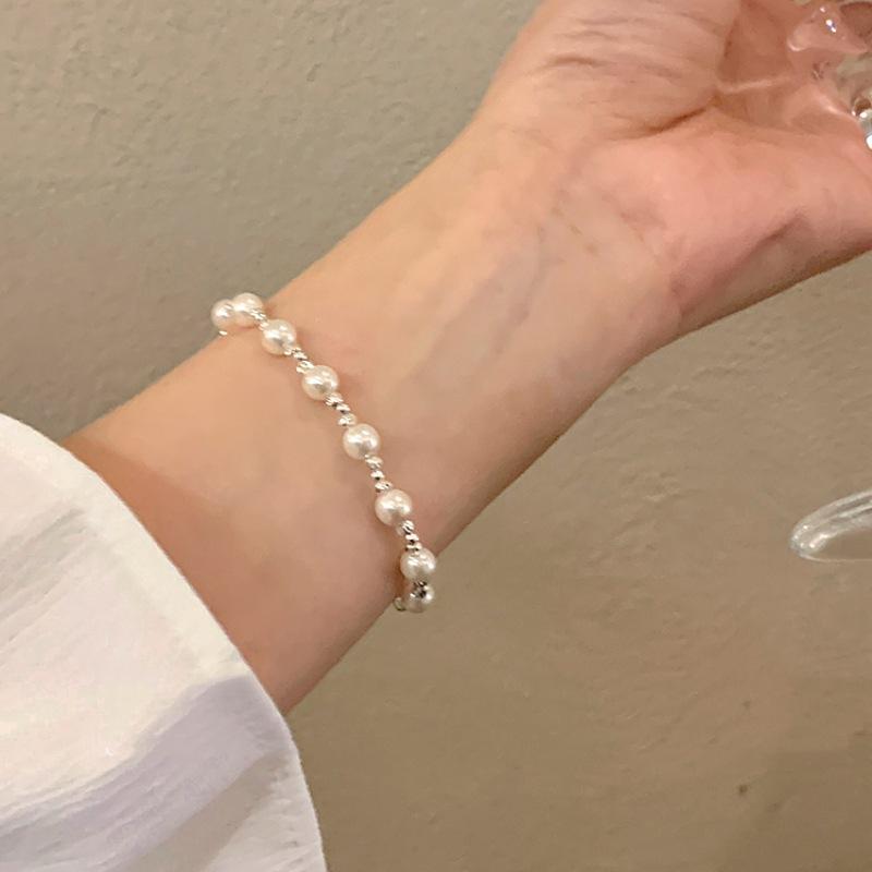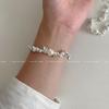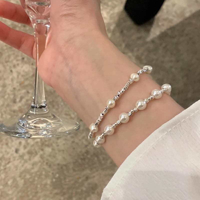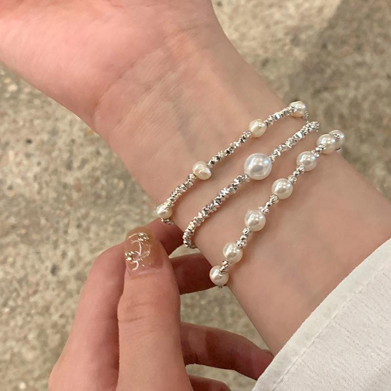 Pulsera de perlas plateadas rotas pulsera para niñas Alta sensación lujo ligero nicho exquisito temperamento acero inoxidable joyería de mano al por mayor
