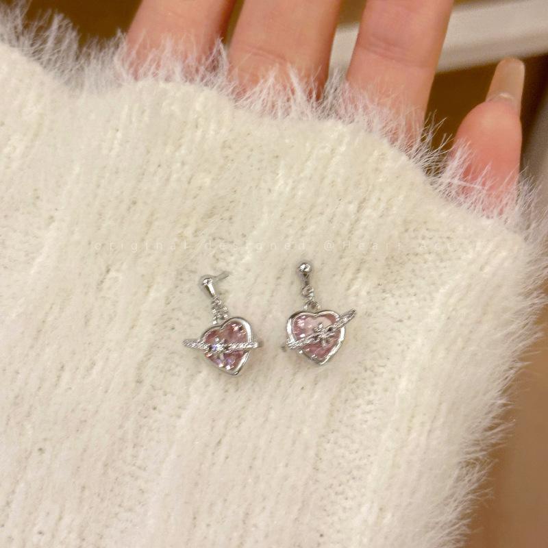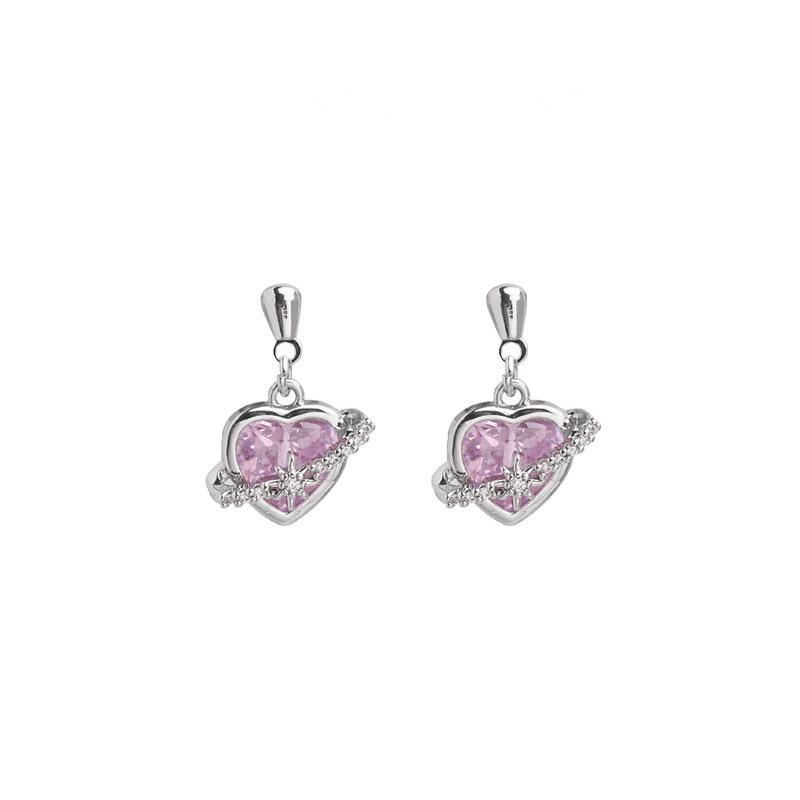 Pendientes de aguja de plata con circonita rosa y diseño de nicho para mujer, de alta calidad, bonitos y elegantes, que combinan con todo.