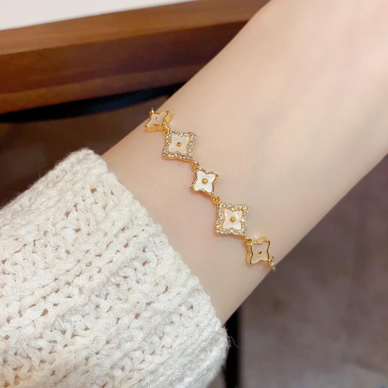 Gold-zircon shell petals pull bracelet (thick real gold plating)