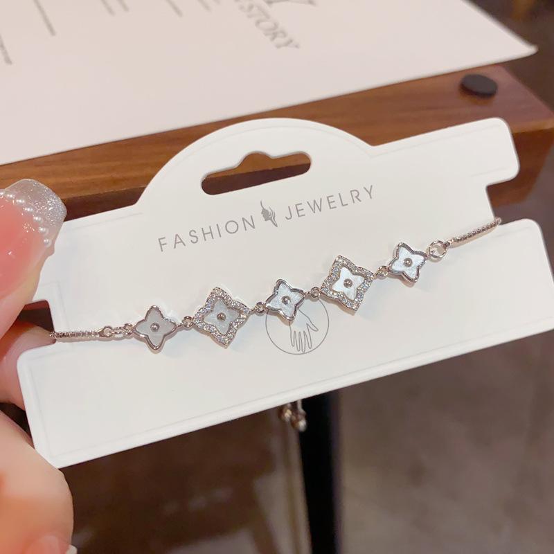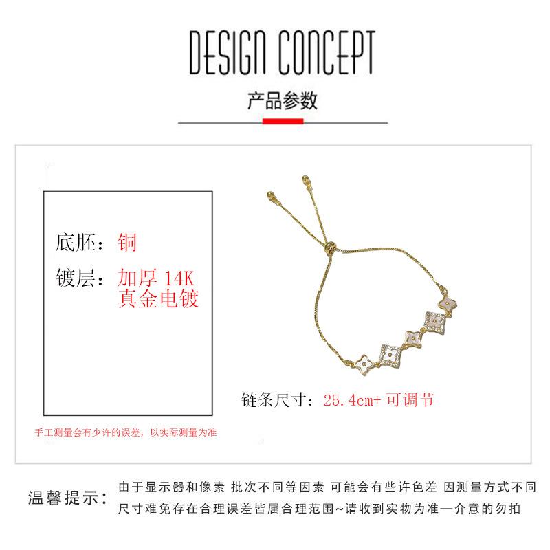 Gold-zircon shell petals pull bracelet (thick real gold plating), silver-zircon shell petals pull bracelet (thick gold plating)