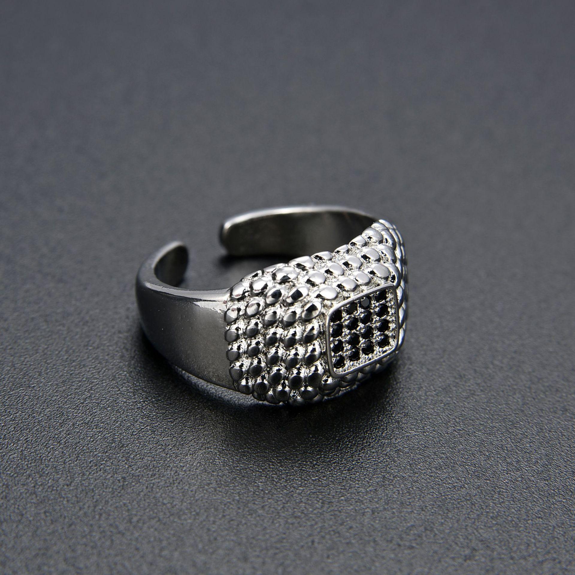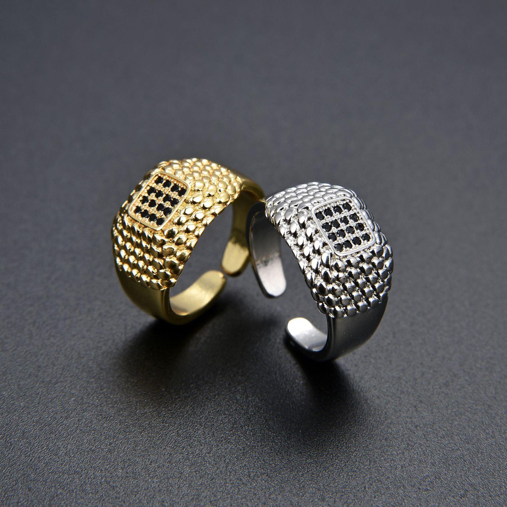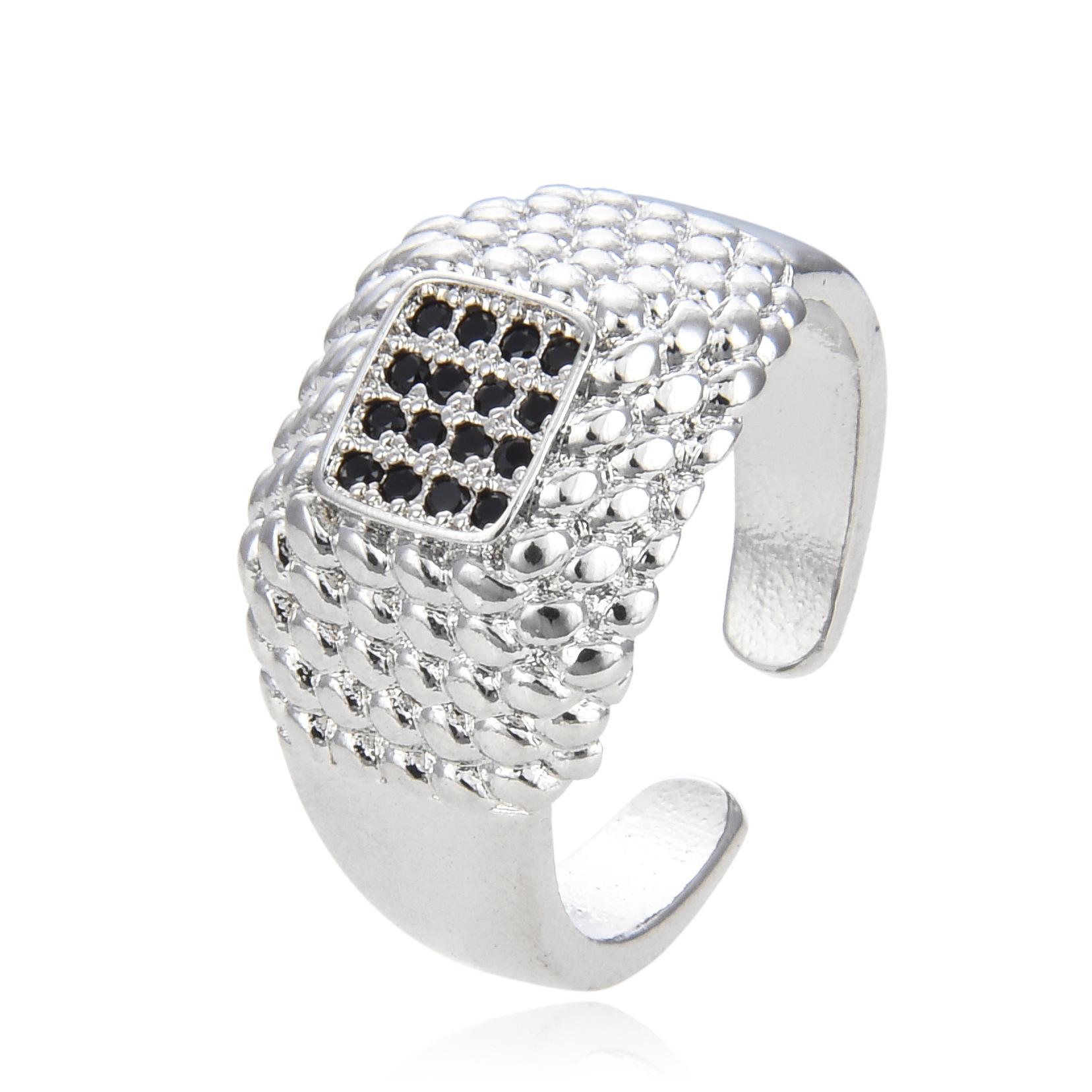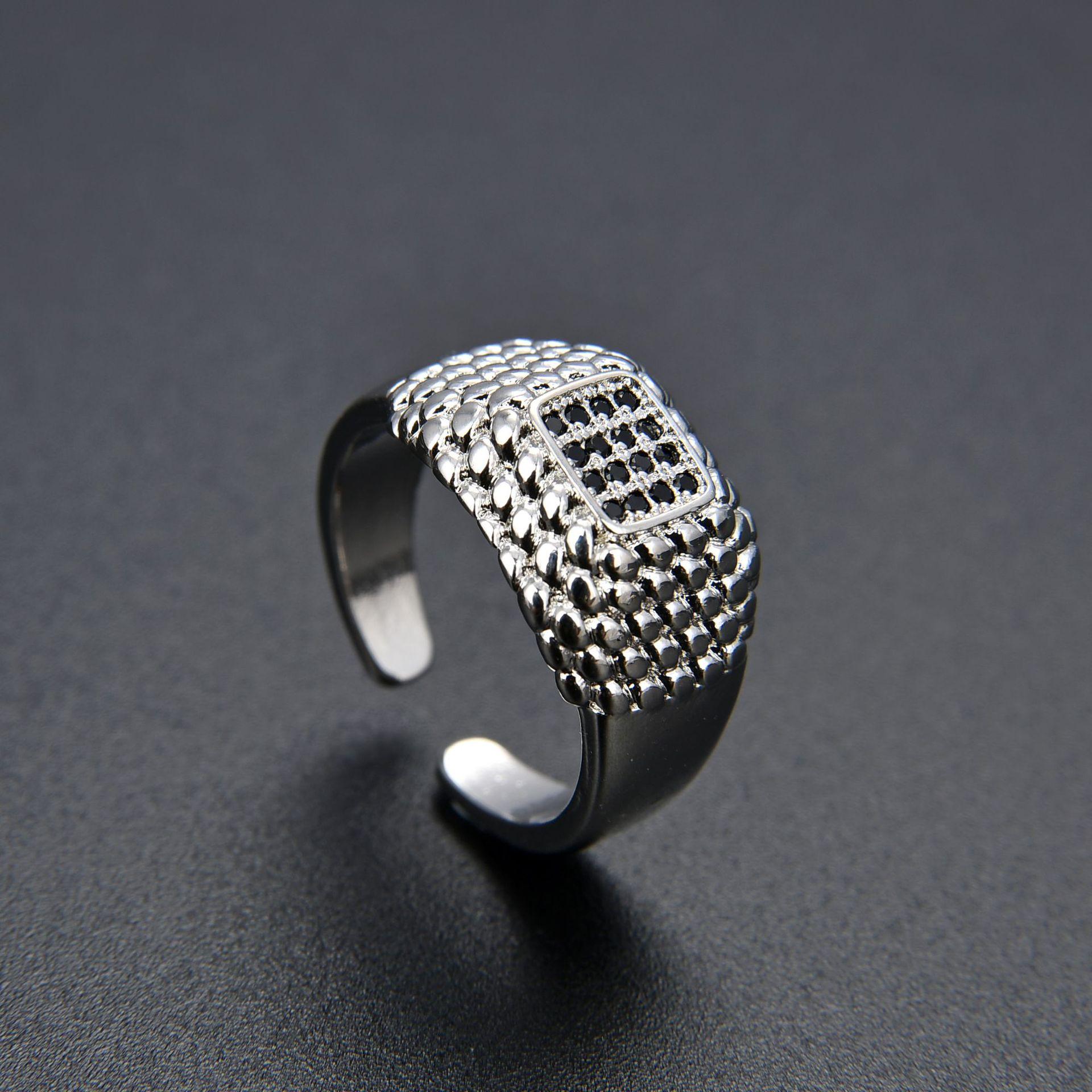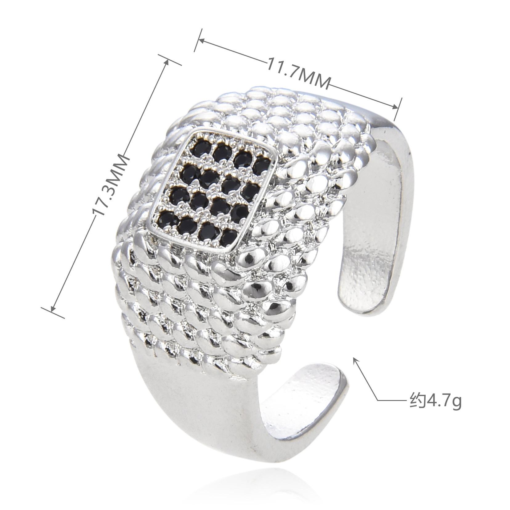 Anillo de estilo coreano con personalidad ajustable, abierto y de cara ancha, con incrustaciones de diamantes cuadrados, de lujo, con circonita negra