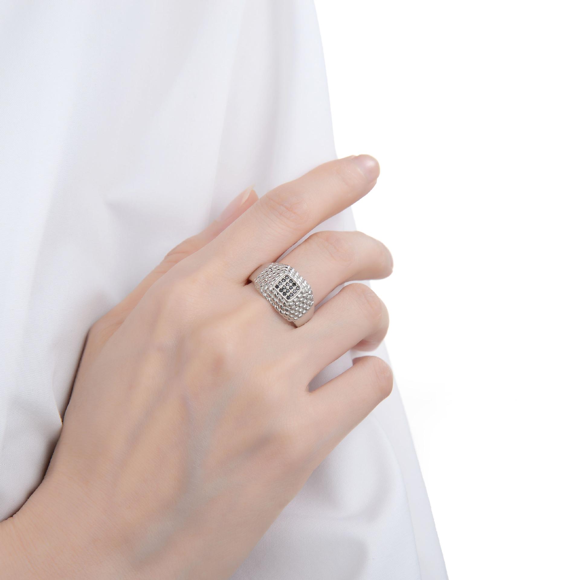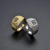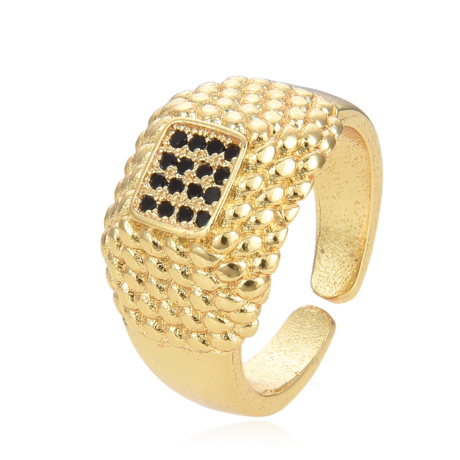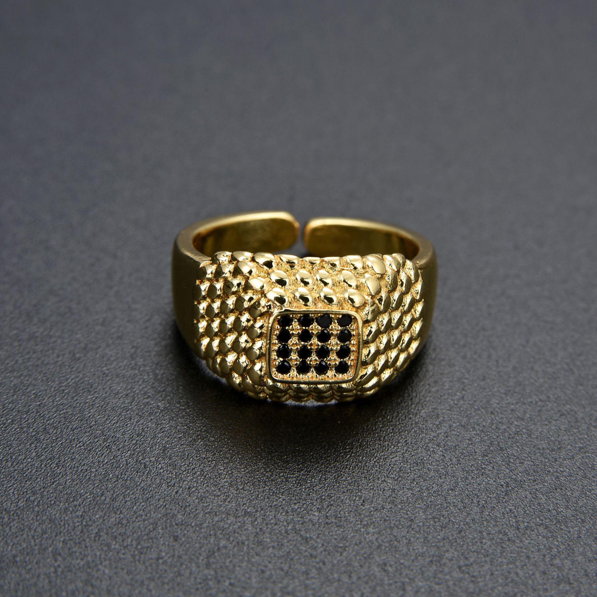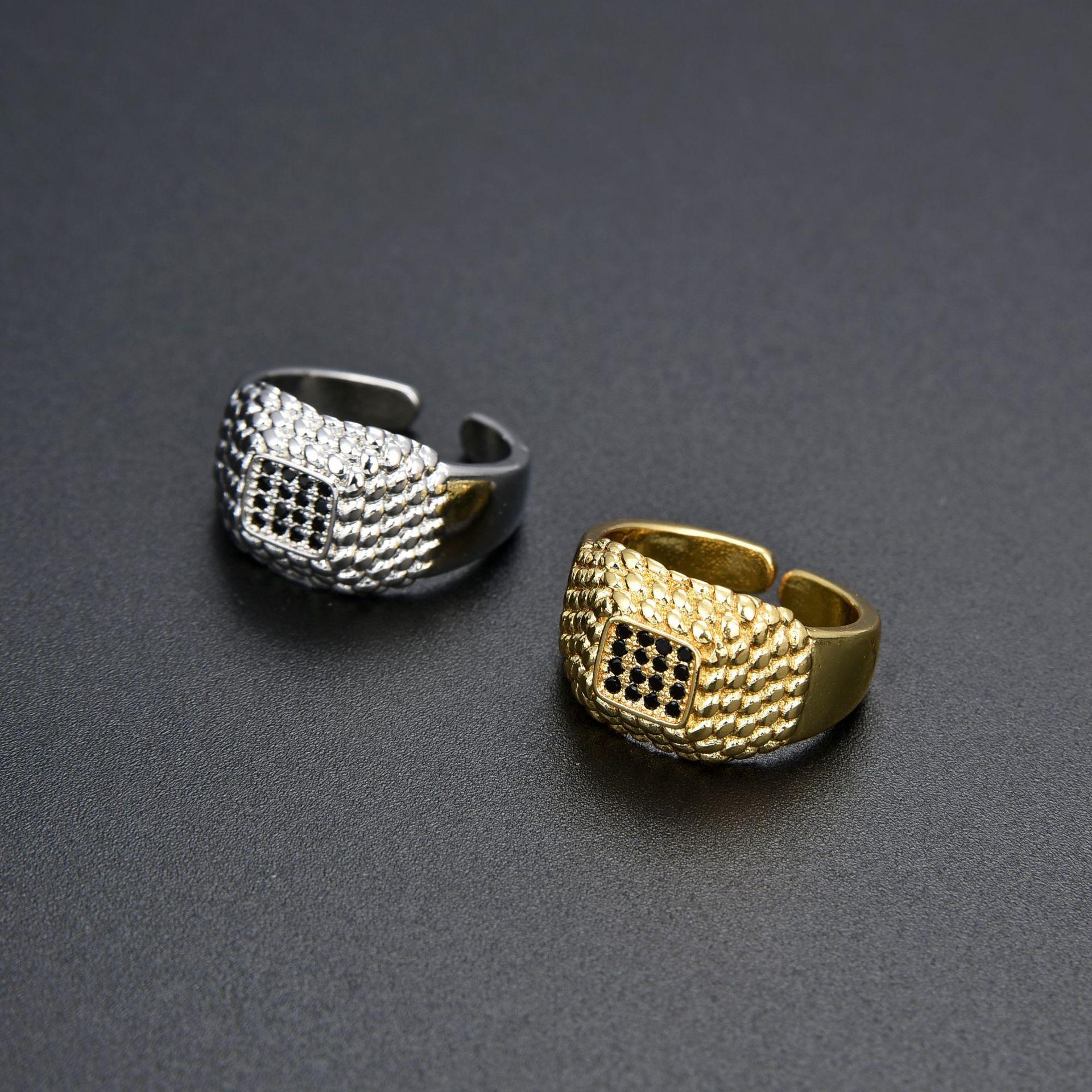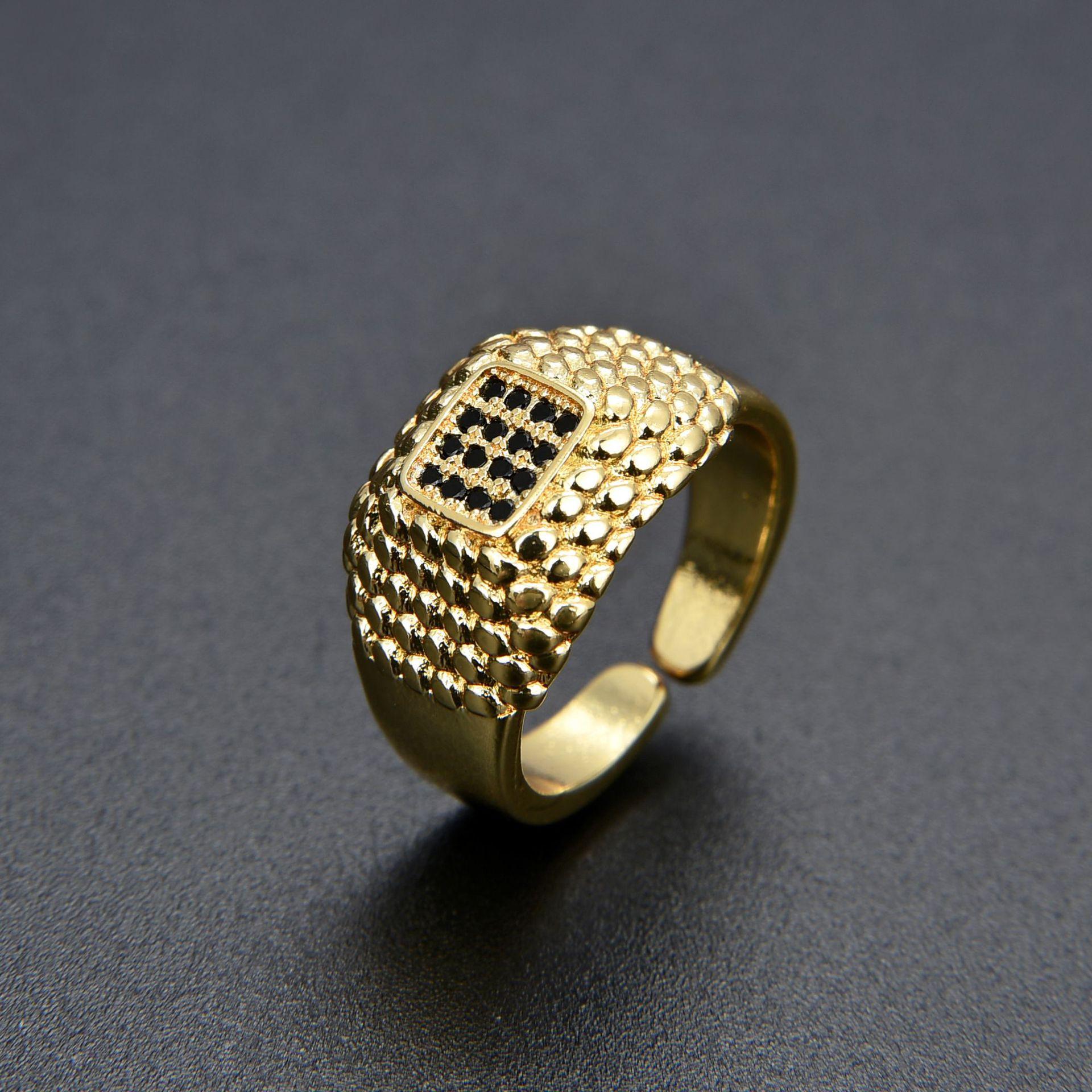 Anillo de estilo coreano con personalidad ajustable, abierto y de cara ancha, con incrustaciones de diamantes cuadrados, de lujo, con circonita negra