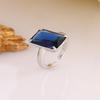 Rong Yu anillo de diamantes azul profundo retro francés diseño cuadrado moda anillo de personalidad simple anillo